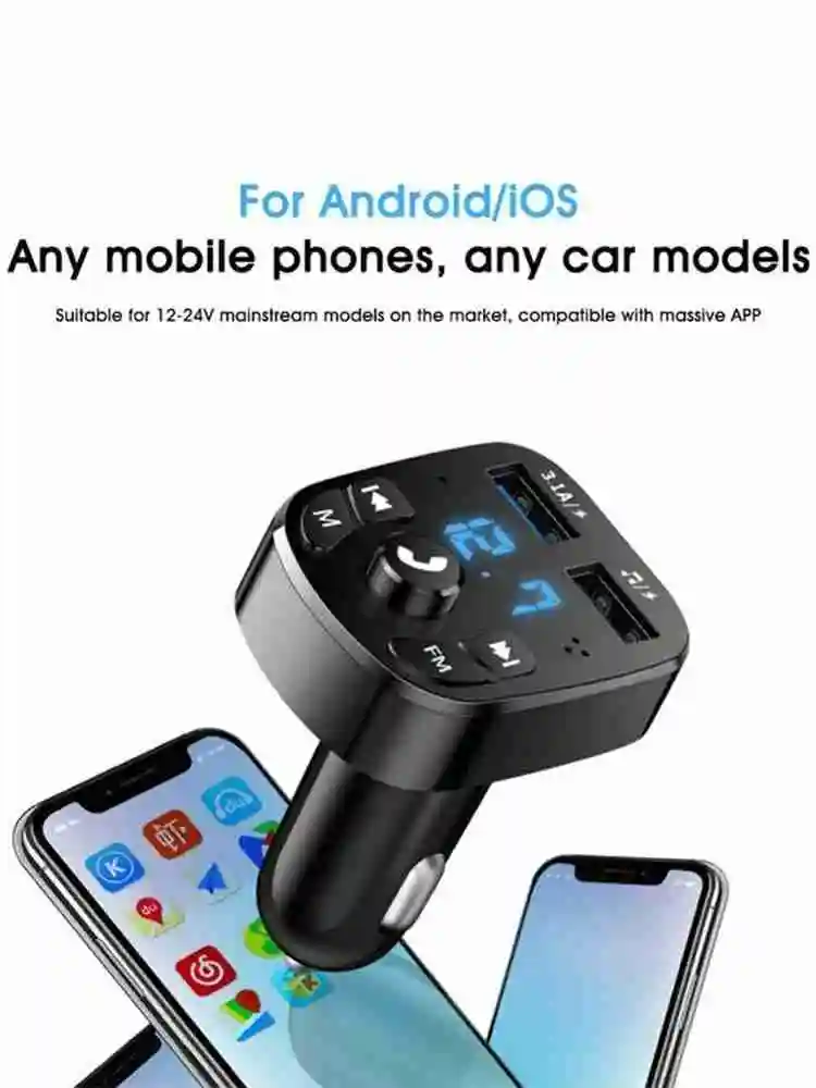Спецификация:Тип материала: ABSТип товара: fm-передатчикНапряжение: 12-24 ВОсобенности: свободные рукиПоддержка автоматического отображения напряжения: напоминание низкого напряженияПоддержка громкой связи: Bluetooth-Совместимость с громкой связьюВстроенный микрофон: hands-free talk car kitBluetooth-совместимый fm-передатчик: Излучатель FM Bluetooth-совместимыйХарактеристика:1. Точный структурный дизайн.2. Зарядное устройство Usb 3.1A, совместимая с Bluetooth версия 5,0.3. Зарядка для прослушивания.4. Поддержка функций питания и хранения.5. Экран может отображать частоту.6. Поддержка bluetooth-совместимых/tf-карт/usb-плееров и Bluetooth-совместимых громкой связи7. Этот продукт использует полночастотную технологию беспроводной передачи FM, которая может напрямую считывать аудиофайлы Bluetooth-совместимых/tf-карт/U диск на мобильный телефон. Поддерживает воспроизведение аудио, совместимое с Bluetooth, и беспроводные звонки, совместимые с Bluetooth. Поддержка функции интеллектуального приложения, высококачественное декодирование аудио без потерь; Многофункциональная MP3 USB функция зарядки автомобиля.8. Функция шумоподавления, встроенная схема шумоподавления, делает голос более четким.Посылка включает:1 шт. автомобильное зарядное устройство