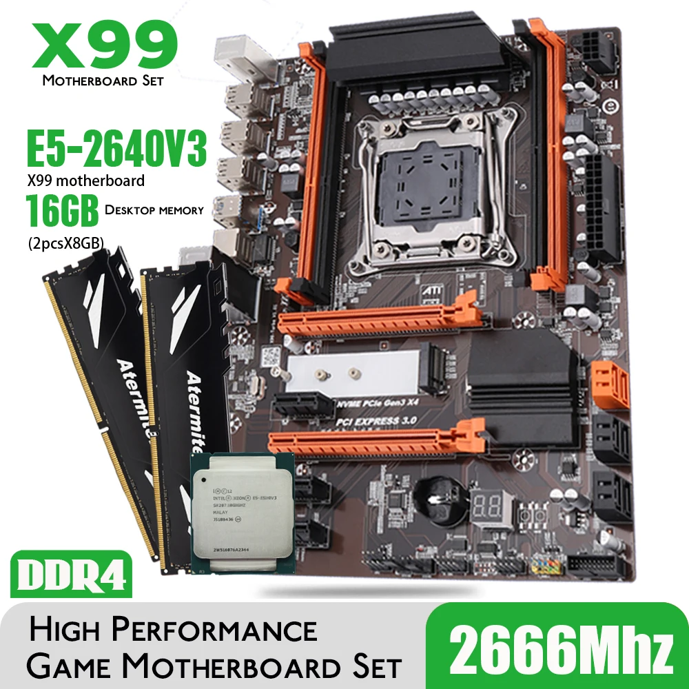 Материнская плата Atermiter X99 Turbo DDR4 D4 с процессором Xeon E5 2640 V3 LGA2011-3 2 шт. X 8 ГБ = 16 Гб 2666 МГц DDR4