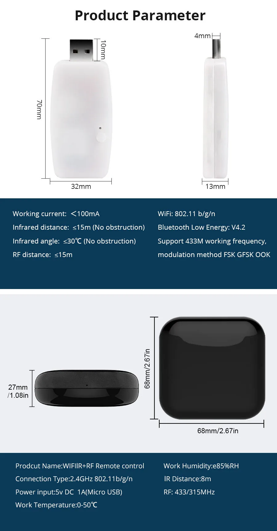 Пульт дистанционного управления Wi-Fi-IR с поддержкой Wi-Fi (2,4 ГГц)