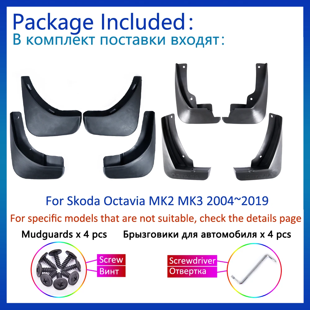 Для Skoda Octavia MK2 A5 1Z 3 MK3 5E Combi для автомобиля с кузовом универсал 2004 ~ 2019 автомобильное Mudflap 4x крыло брызговиков Стайлинг Аксессуары Новое обновление защита от брызг 2004 2005 2006 2007 2008 2009 2010 2011 2012 2013 2014 2015 2016 2017 2018 2019