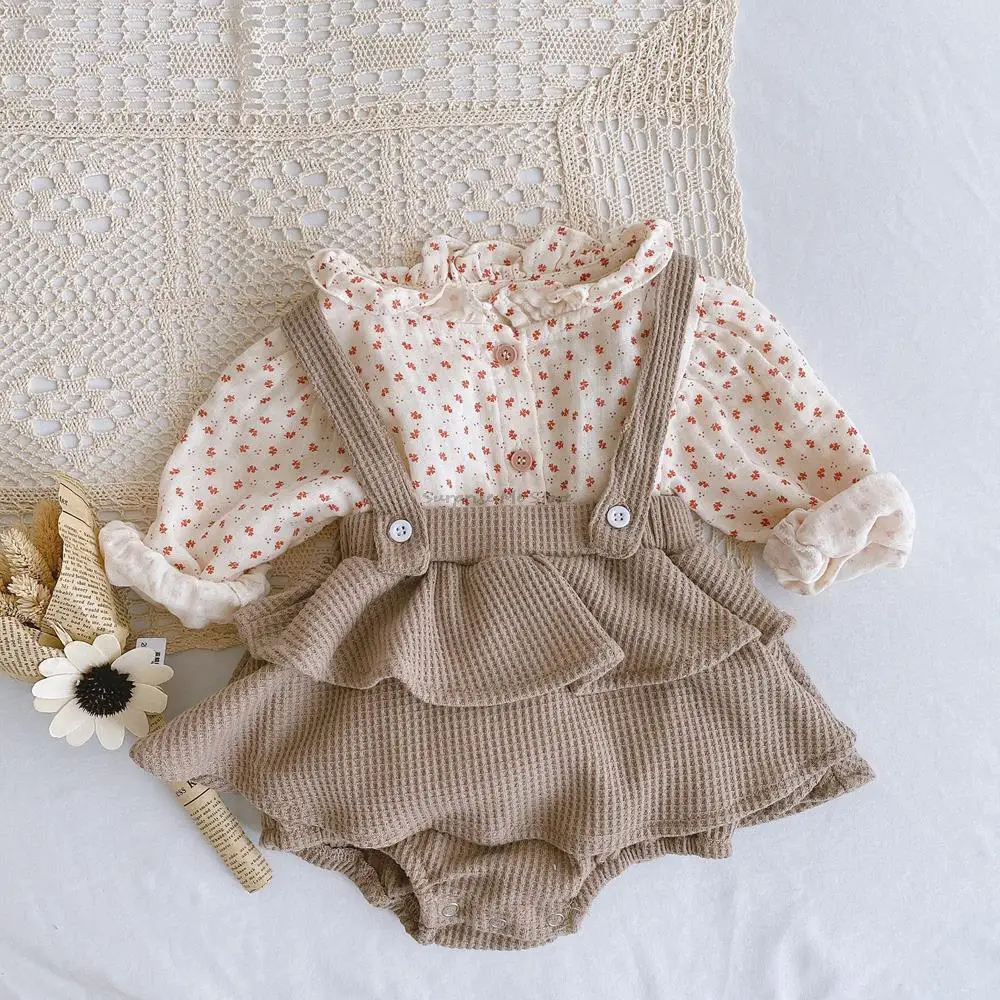 Детский хлопковый комбинезон, рубашка с оборками и цветочным принто...