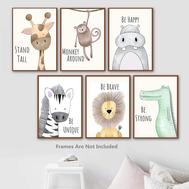 Мультяшное сафари, животные, настенное искусство для маленьких мальчиков, девочек, детей, спальни, 21*30 см, детская комната джунглей, Настенный декор, художественные картины