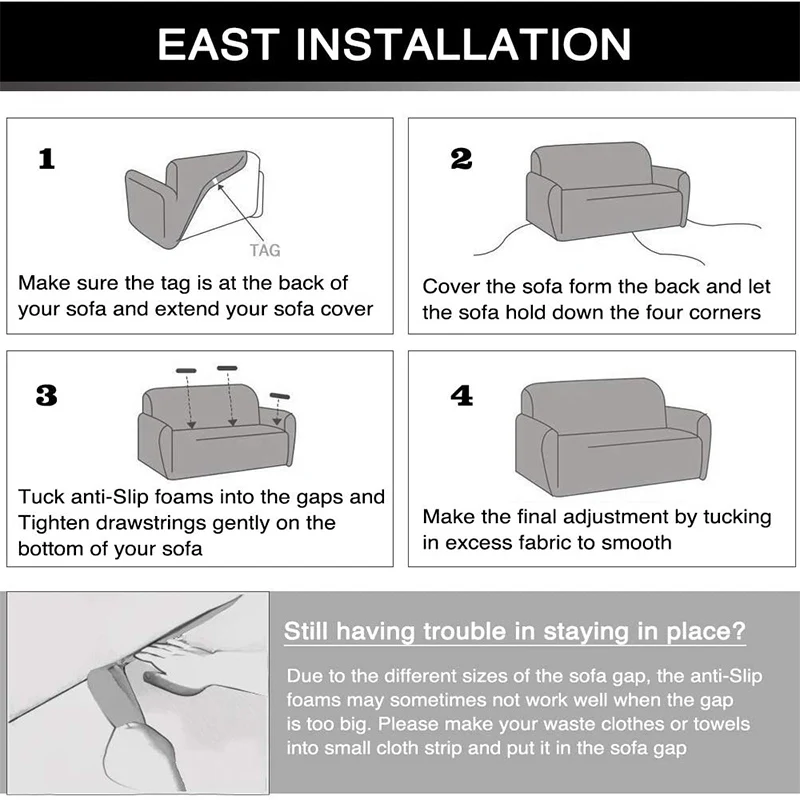 Материал и дизайн: полиэстер и спандекс. Все круги без углов обернуты, не легко мнется; Эластичная лента и застежка на ремне внизу, двойное укрепление, не легко смещается. Подходит для большинства мебели: подходит для большинства типов диванов, таких как тканевый диван или кожаный диван с зазором. Пожалуйста, измерьте перед покупкой. 1 местный чехол для кресла подходит для большинства кресел длиной до спинки от 90 до 140 см/от 35 до 55 дюймов. 2-местный чехол-накладка для loveseat подходит для большинства моделей от 145 до 185 см/57 до 72 дюймов. 3-местный чехол для дивана подходит для большинства диванов длиной до спинки от 190 до 230 см/от 75 до 90 дюймов. 4-местный чехол для дивана подходит для большинства диванов длиной до 235-300 см/92-118 дюймов. Остается на месте: если ваш диван типа L или углов в сочетании с 2 частями отдельно, вам нужно заказать 2 шт Крышка для него. Этот чехол для дивана подходит для дивана, который имеет глубокий зазор между сидением со спинкой и подлокотником. Маленькая тканевая полоска, которую вы используете, чтобы держать на месте, нажмите их вниз и под насколько вы можете, будет держать на месте. Защита: Этот базовый чехол-накладка защищает вашу мебель от пятен, пятен, износа, чтобы предотвратить его повреждение. Он отлично подходит для домов с домашними животными или для тех, кто ищет экономичное решение для защиты мебели. И украсит вашу гостиную и произведет впечатление на ваших гостей, тратя меньше денег. Легкий вес и простота в уходе: легко установить и забрать; Машинная стирка в холодной воде, не отбеливать, сушить в стиральной машине, не гладить, шаги по установке показаны на изображении. Пожалуйста, обратите внимание: сторона с биркой-задняя. Есть несколько пенополистирол или вы можете подготовить что-то похожее на полотенца, чтобы помочь уложить чехол в диван, чтобы убедиться, что наш чехол лучше подойдет Вашему дивану, пожалуйста, проверьте, есть места (зазоры) на спине и двух дужках для прокладки пены, Таким образом, он может держать углы и формировать крышку, а также наш чехол лучше подойдет для обычного дивана.