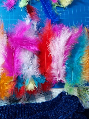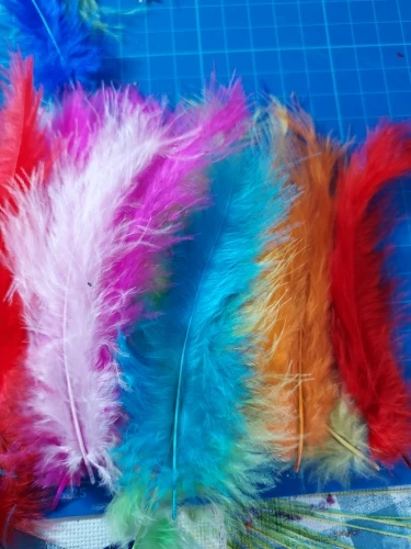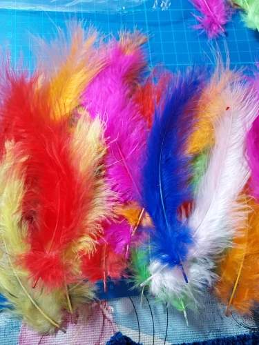 Нормальные перья. Размер указан верно. Цвет соответствует.
