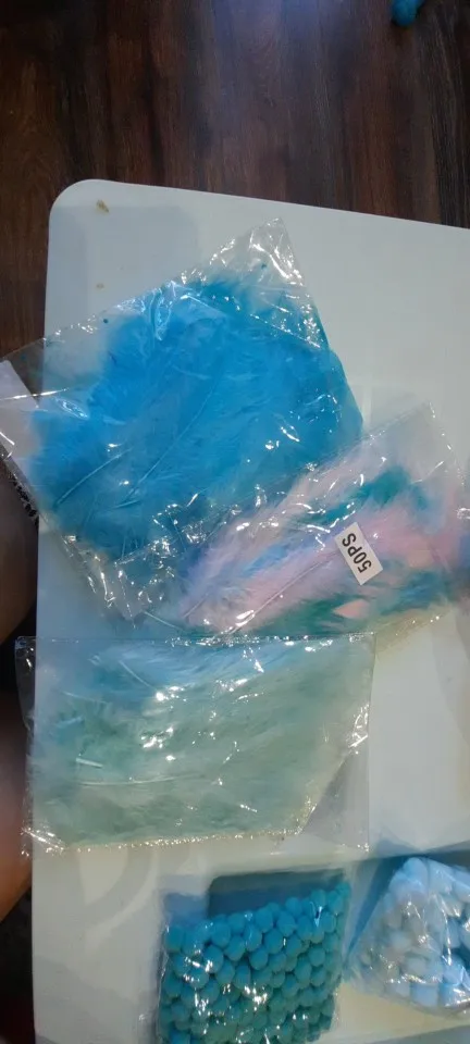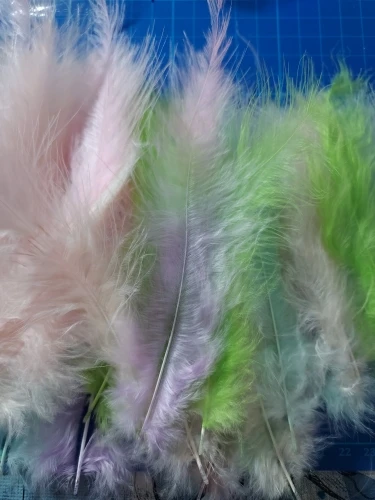 Перья очень нежные, красивые, в упаковке цвет хорошо выражен. Но по отдельности окраска перьев очень деликатная, цвет одного пера слегка угадывается, бледно-бледно розовый или бледно-бледно голубой. Но красивые). Меня устроило, т.к. есть другое акцентные перья.