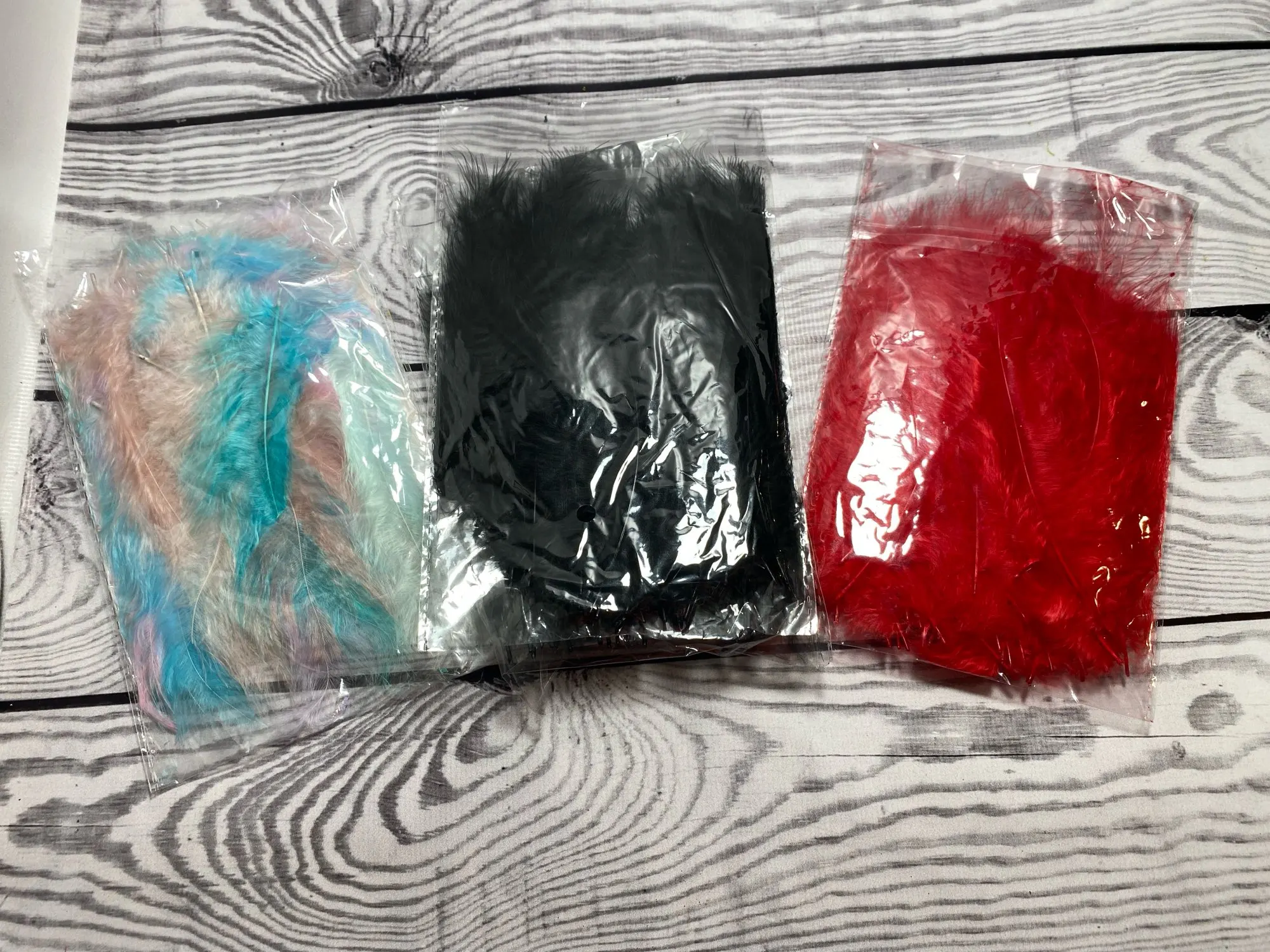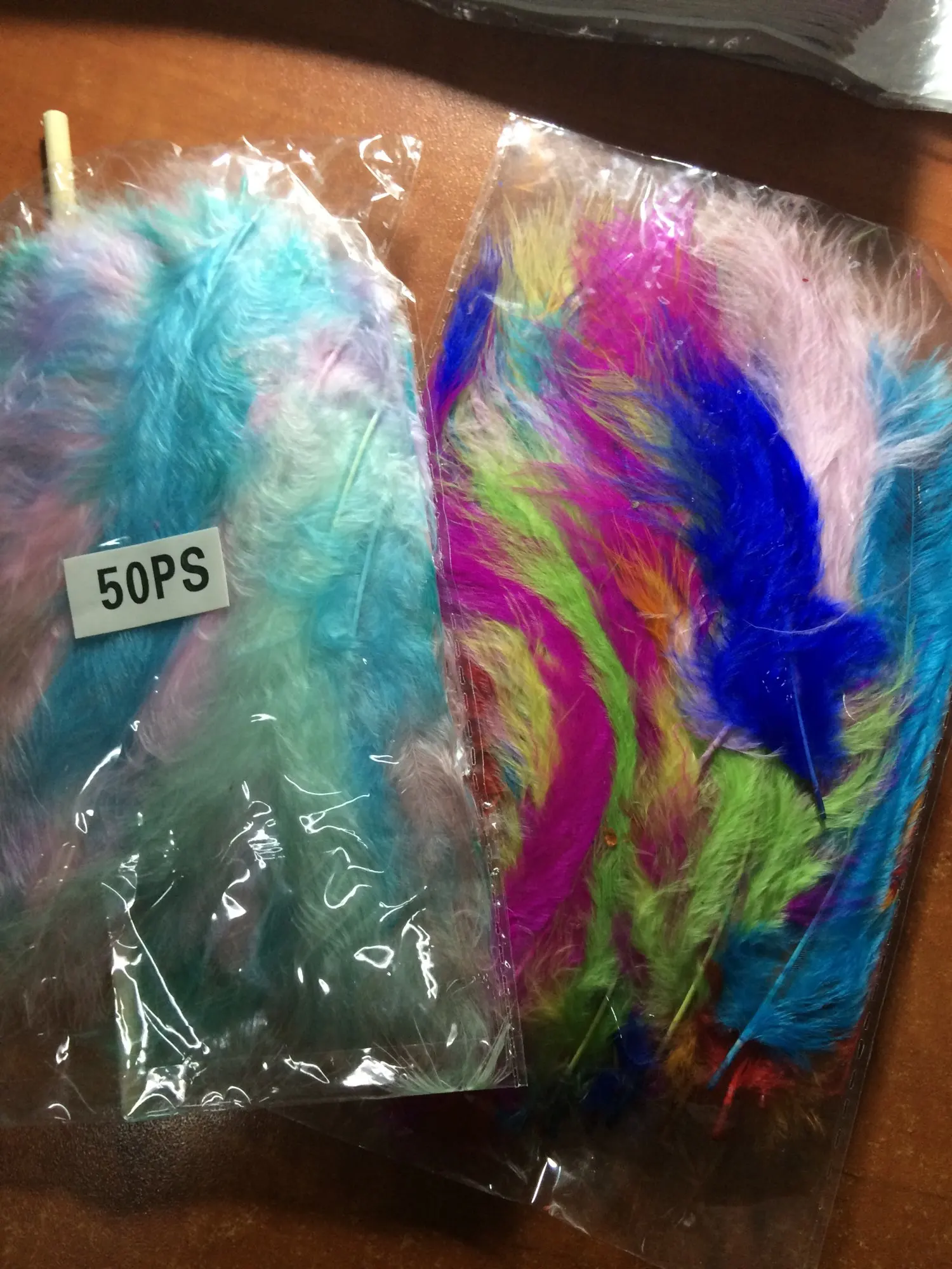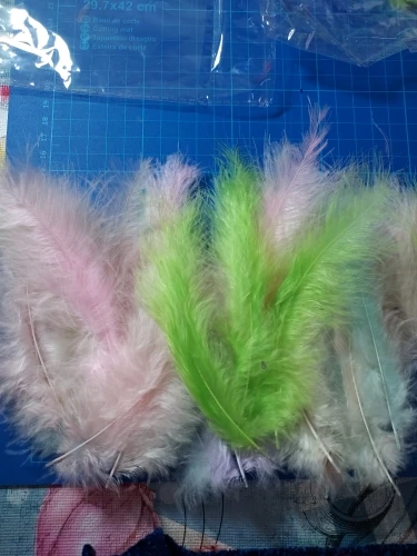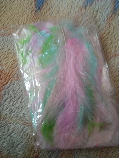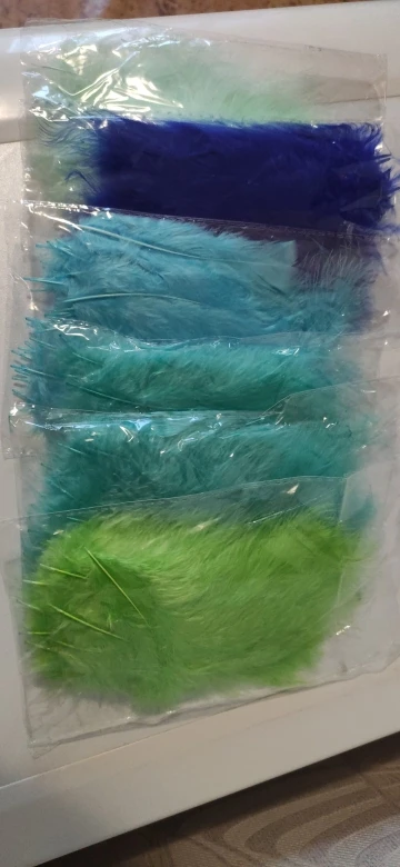 Заказ шел больше месяца. Цвет перышек совпадает с представленными на фото. Не все перышки хорошего качества, но есть и хорошие. Для моих изделий можно выбрать.