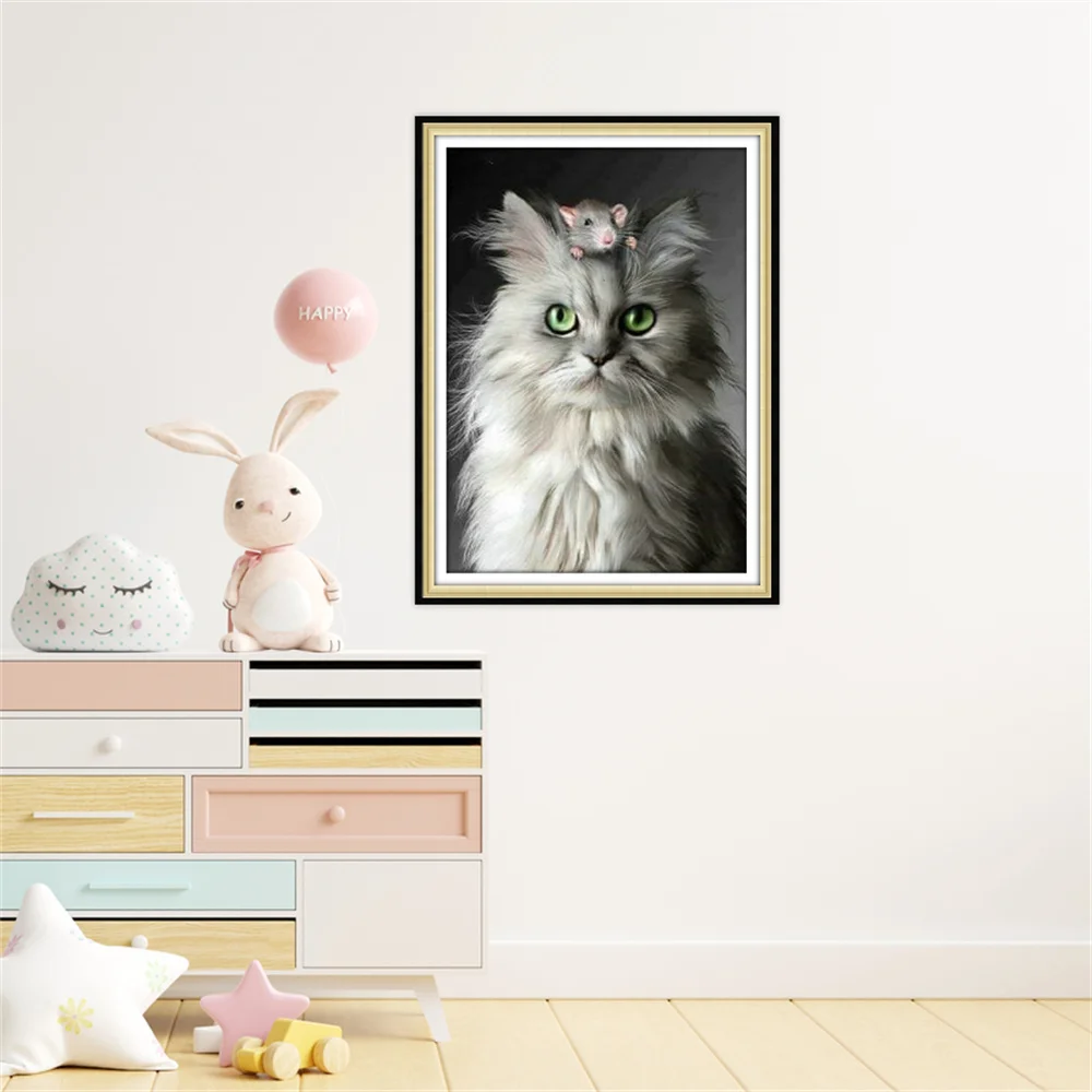 Алмазная живопись 5D "сделай сам", Набор для вышивки крестиком в виде кошки, алмазная вышивка крестиком, картина для украшения дома, этикетка для домашнего декора