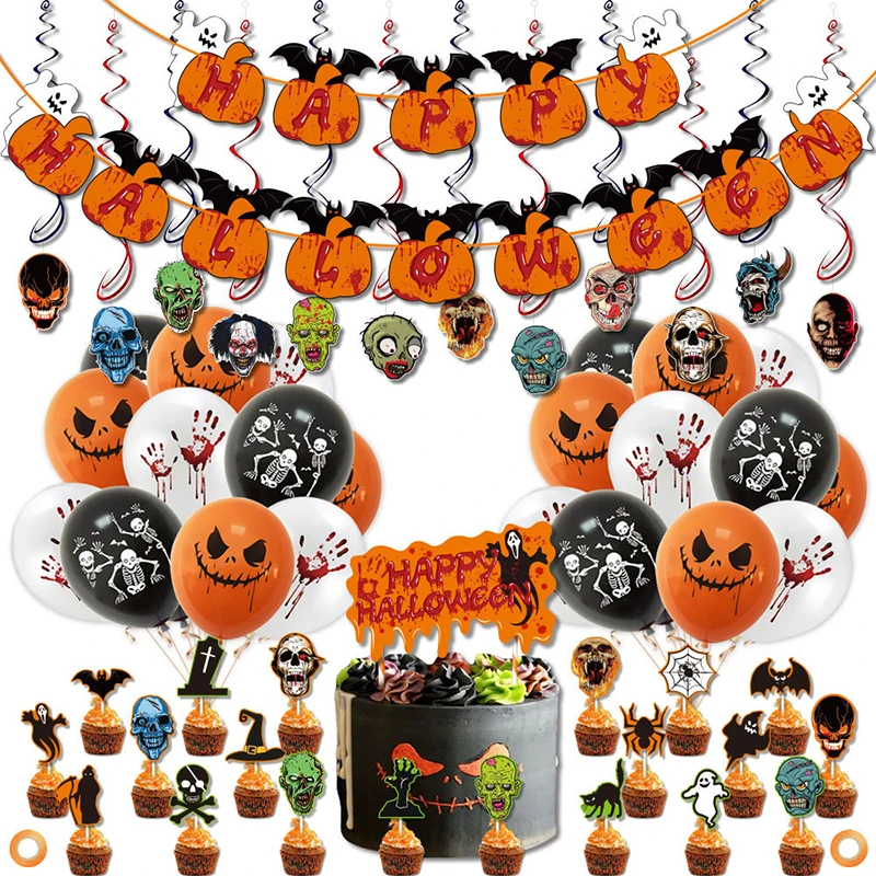 Украшение для вечевечерние НКИ на Хэллоуин, баннер на Хэллоуин, гирлянда, украшение в виде черепа, летучей мыши, торта, воздушных шаров, украшение для дома и бара на Хэллоуин