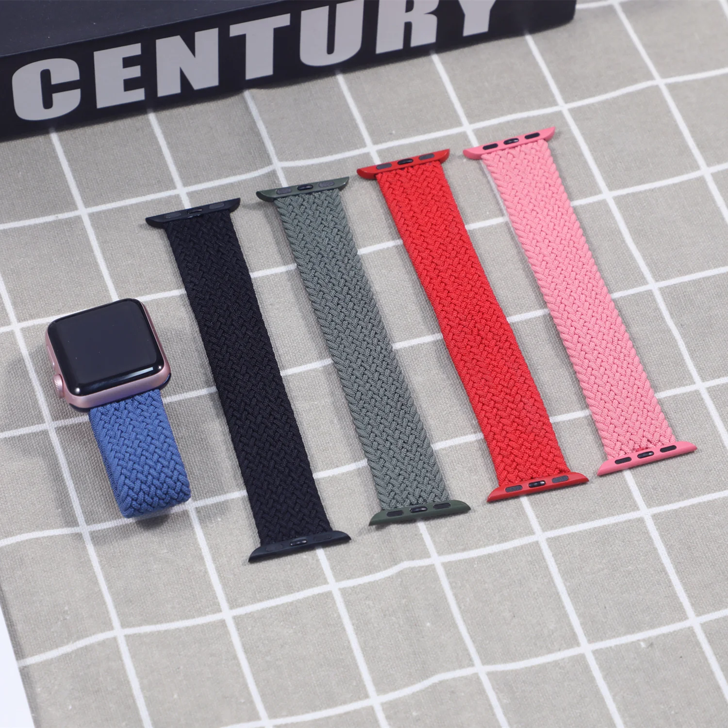Ремешок соло тонкий плетеный для Apple watch, эластичный тканевый б...
