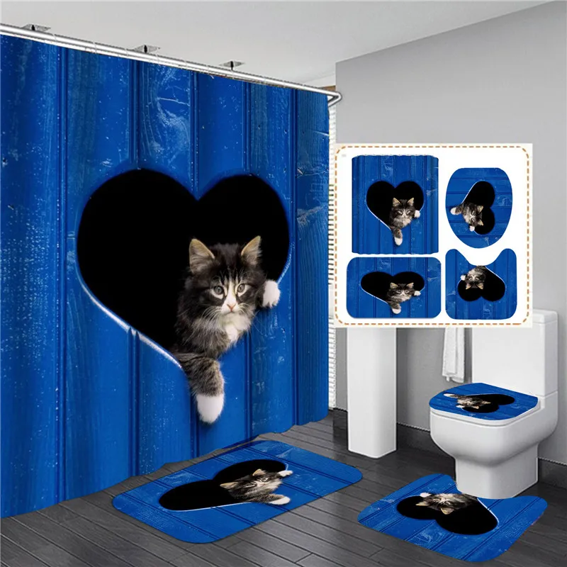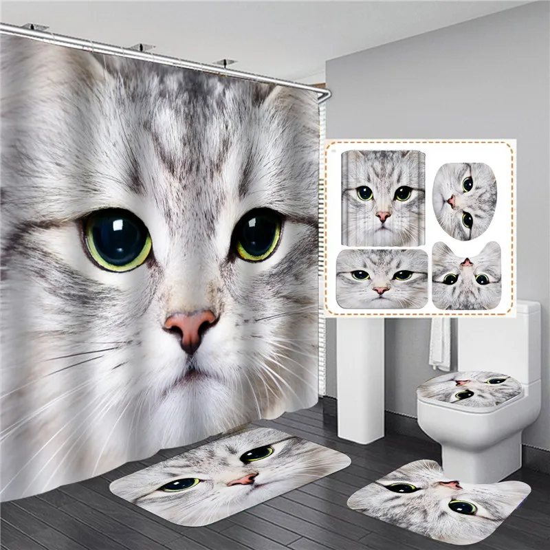 Крутая занавеска для ванной комнаты с рисунком кошки и животных, занавеска для душа с противоскользящими ковриками для ванной, домашний коврик, крышка унитаза, крутая занавеска с кошкой