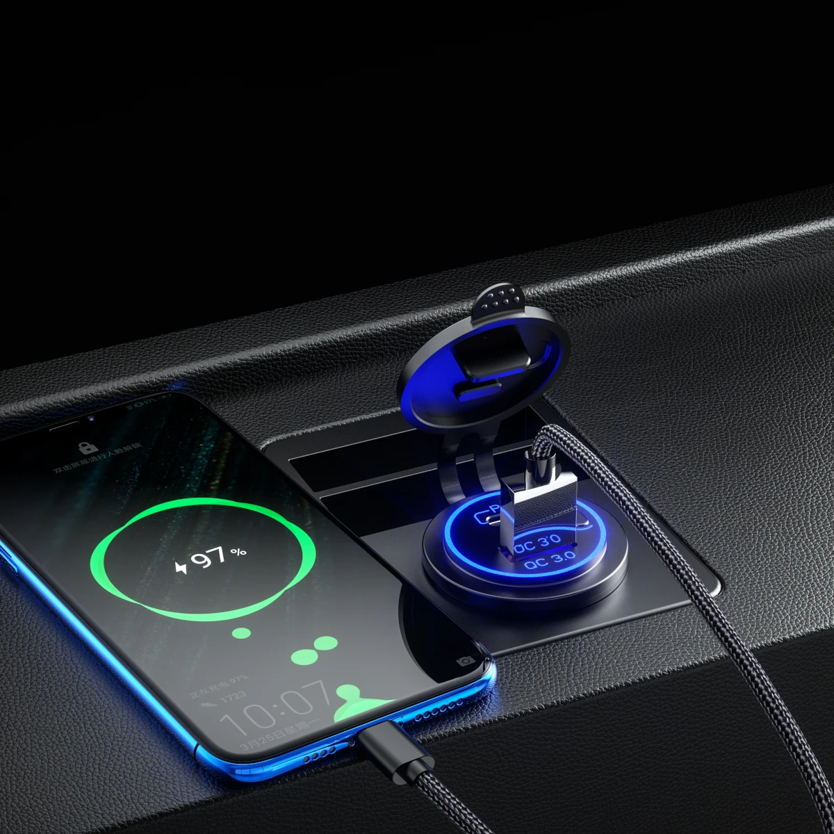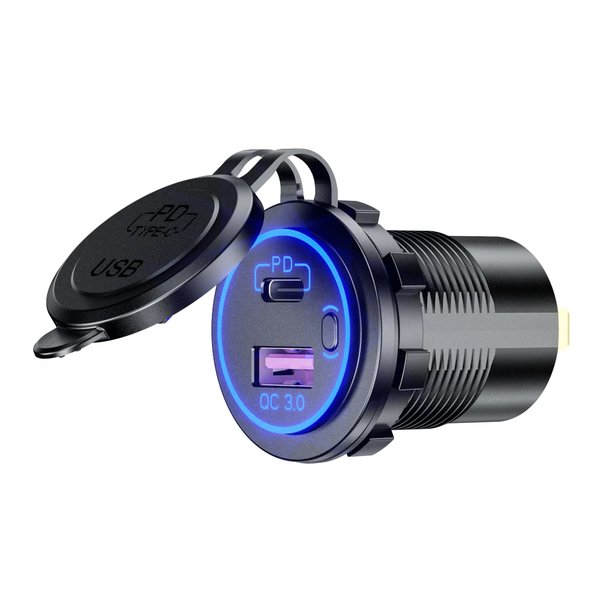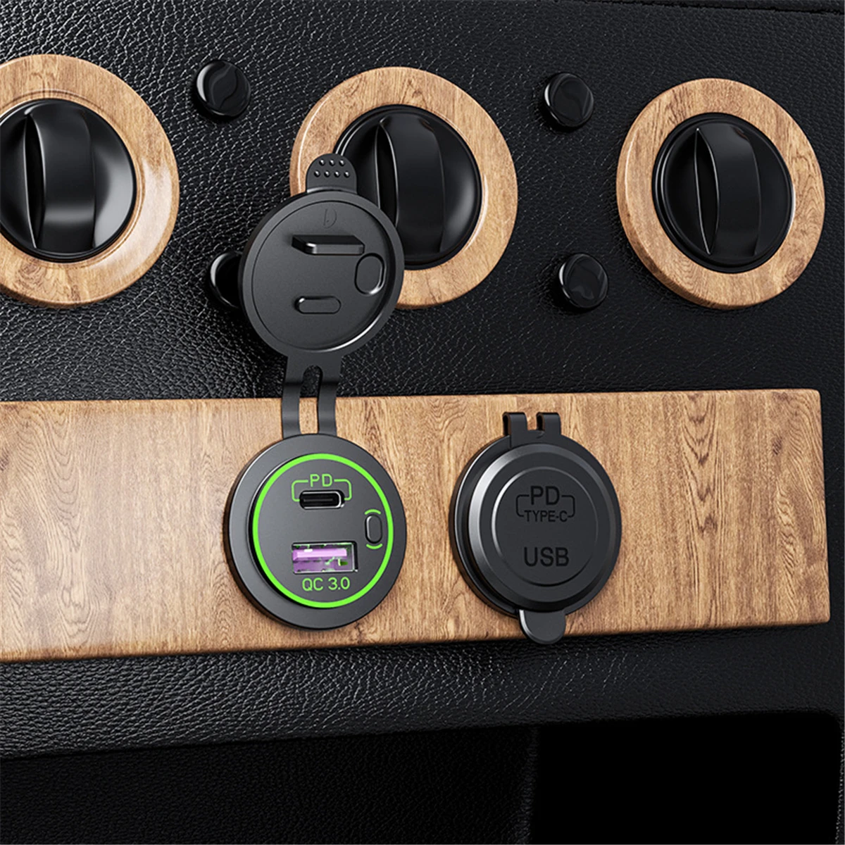Автомобильное зарядное устройство PD Type C QC 3,0, USB-розетка с выключателем, адаптер питания, водонепроницаемый, для 12 В, 24 В, для грузовиков, лодок, домов на колесах, мотоциклов