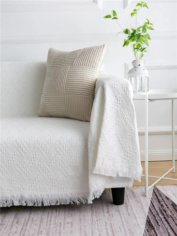 Современный белый чехол для дивана с кисточками для гостиной, декор в клетку, чехол для дивана, полотенца, пылезащитный чехол, скатерть, многофункциональное гобеленовое одеяло