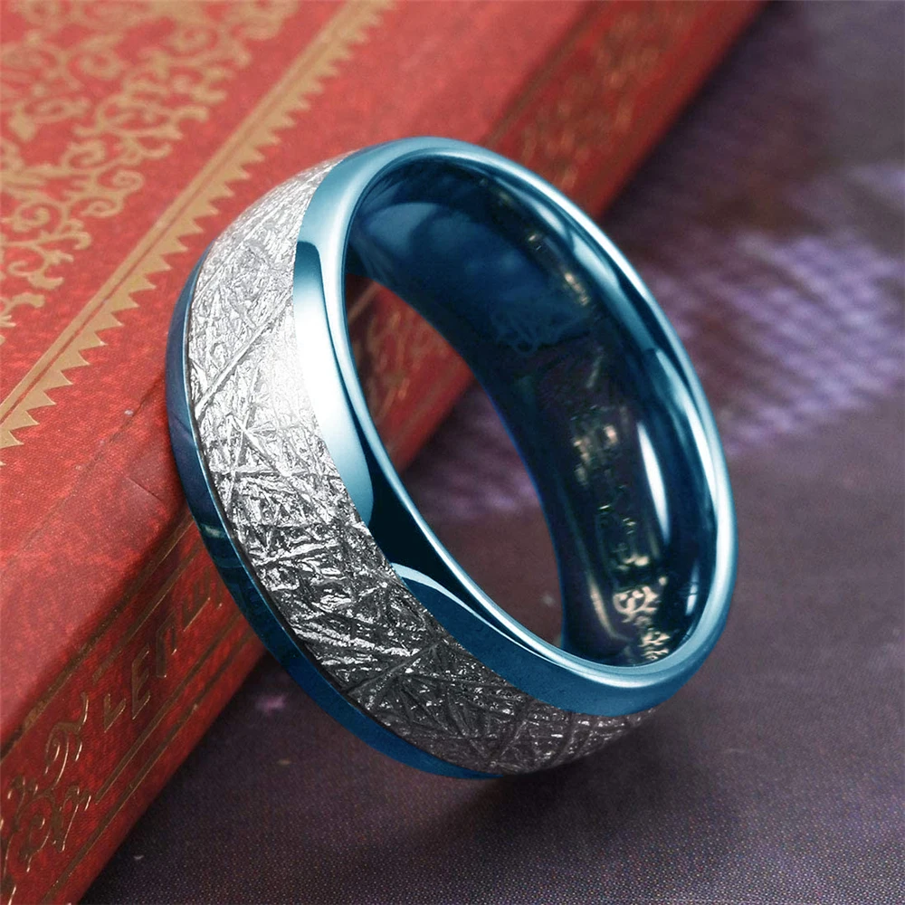 Трендовое мужское кольцо из карбида вольфрама 8 мм, винтажное серебряное кольцо с метеоритами Из Инкрустированного углеродного волокна, мужское Обручальное кольцо s, оптовая продажа