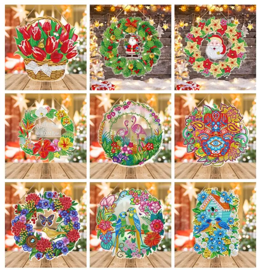 Алмазная картина сделай сам, венок, украшение для окна со светодиод...