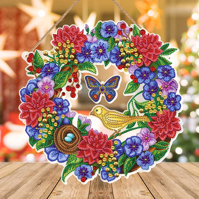 Алмазная картина сделай сам, цветы, Рождественский венок, украшение...