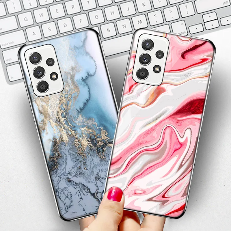 Чехол из закаленного стекла для Samsung Galaxy A33, чехол с мраморн...