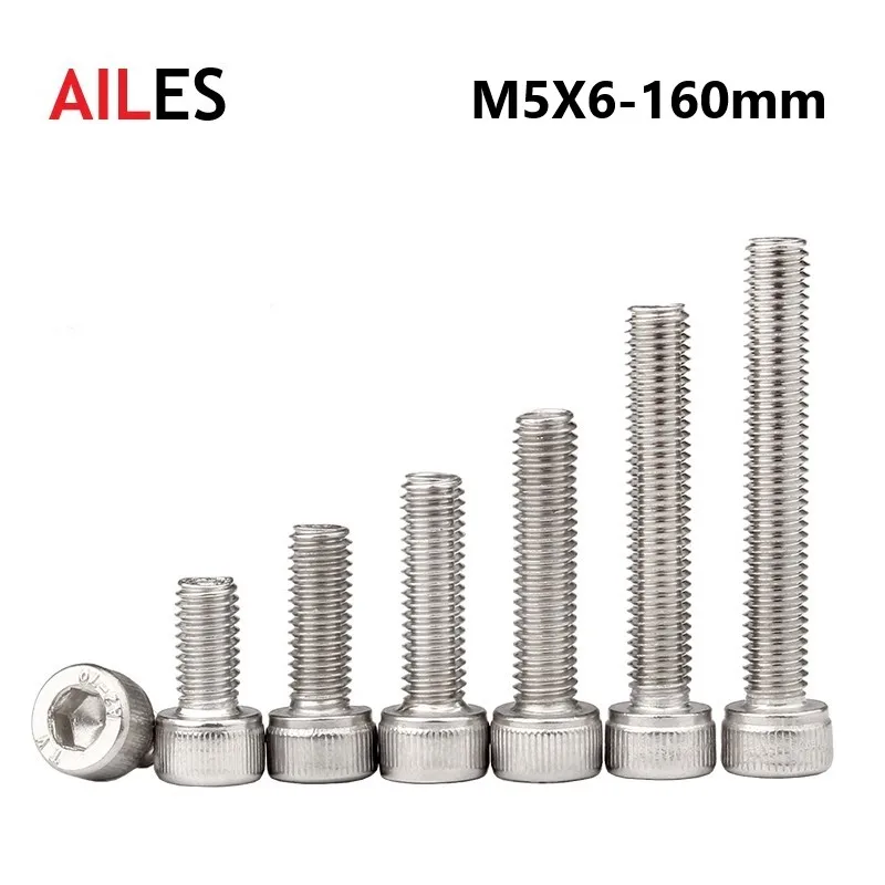 Болт с шестигранной головкой M5 304, из нержавеющей стали, DIN912, M5x6, 8, 10, 12, 22, 25, 30, 35, 40, 45, 100, 110, 130, 150, 160 мм
