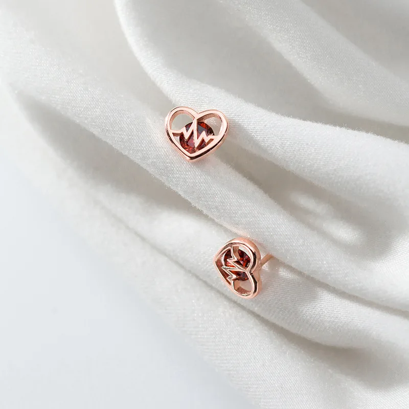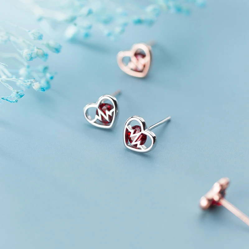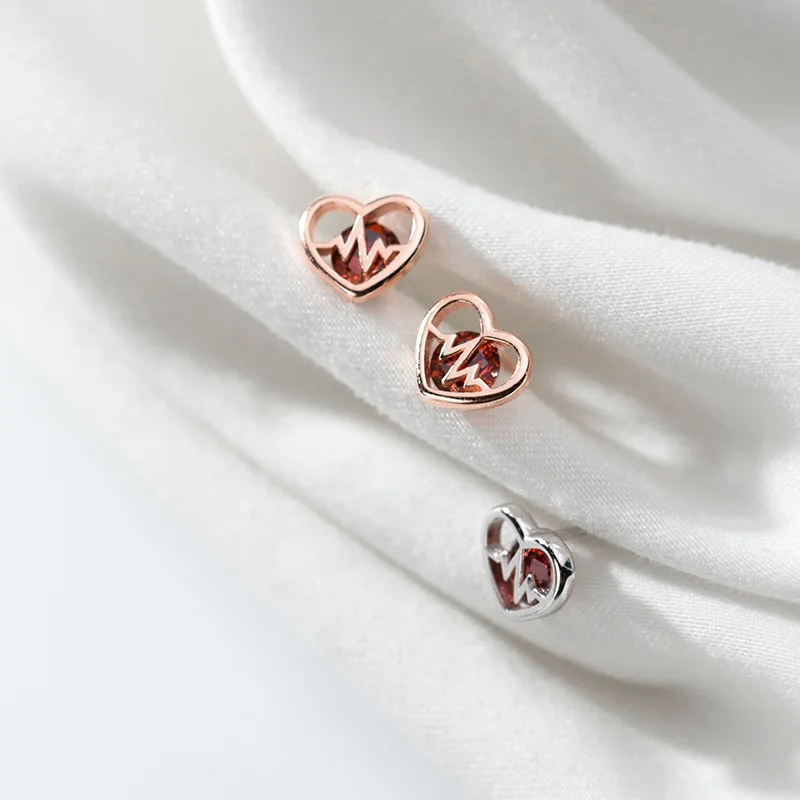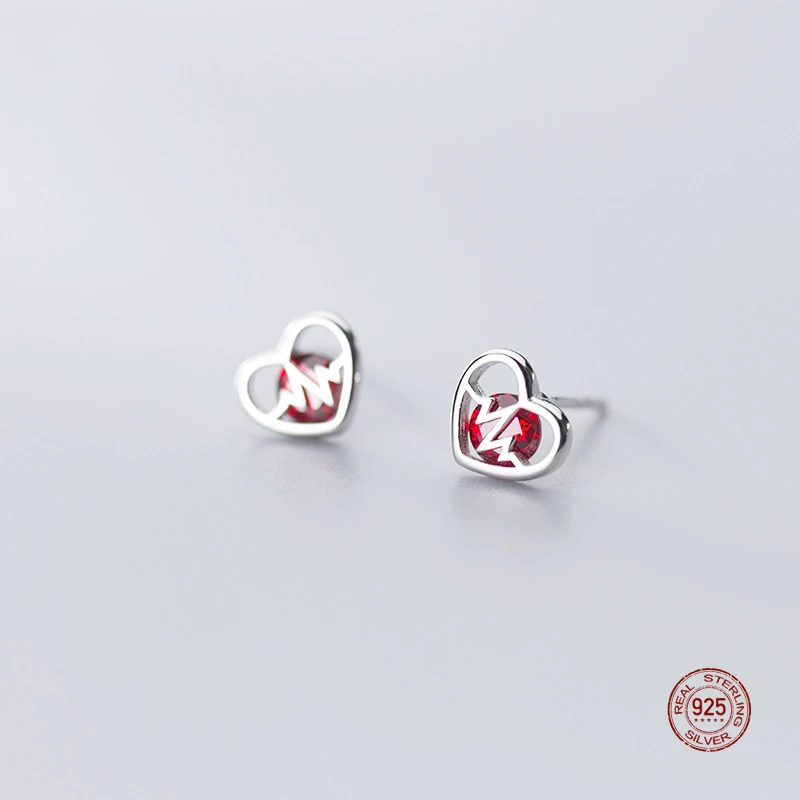 LKO настоящее серебро 925 пробы Винтаж полые встроенный кристалл сердцебиение серьги-гвоздики для Для женщин девочек вечерние ювелирные изделия подарок серьги-гвоздики