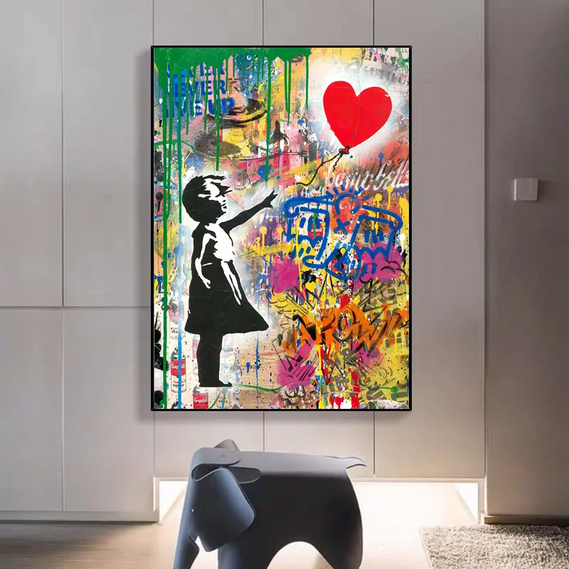 Абстрактная картина Бэнкси на холсте Детские и сердца плакаты принт...