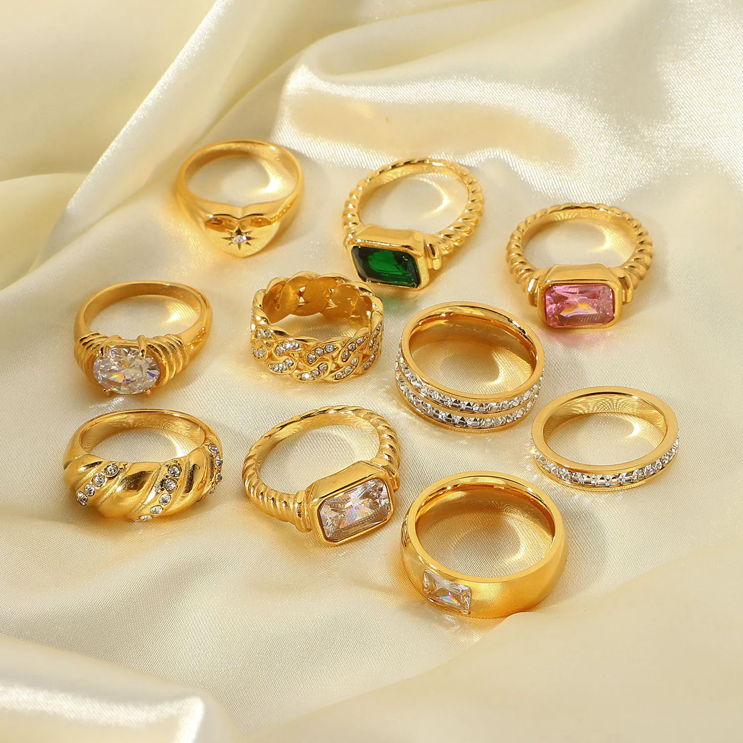 Blingbling прямоугольное циркониевое кольцо 18K Золото PVD покрытие...