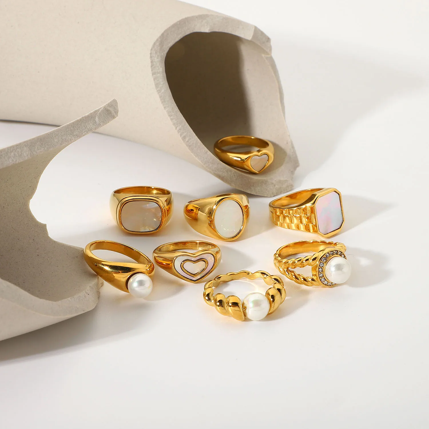 Классические кольца из нержавеющей стали с жемчугом и ракушкой, жен...