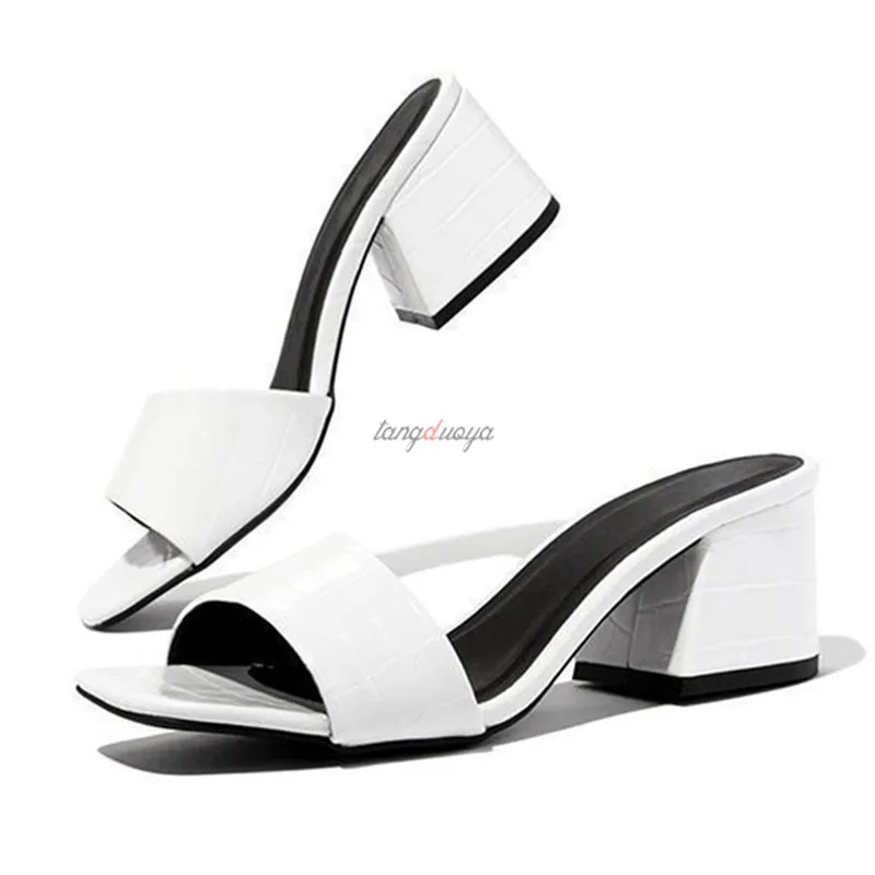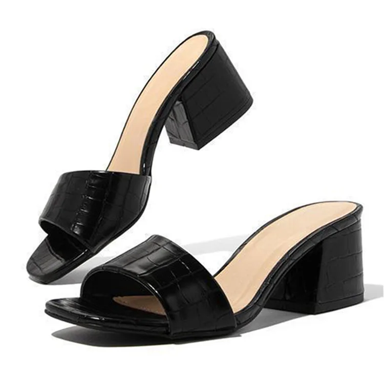 Роскошные женские шлепанцы на высоком каблуке 6 см; Женские летние босоножки на высоком каблуке с открытым носком; Большие размеры; Шлепанцы на высоком каблуке; Женская обувь на блочном каблуке
