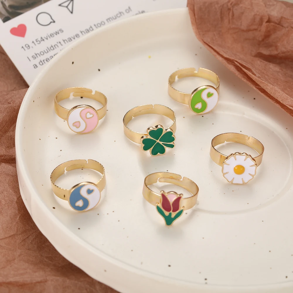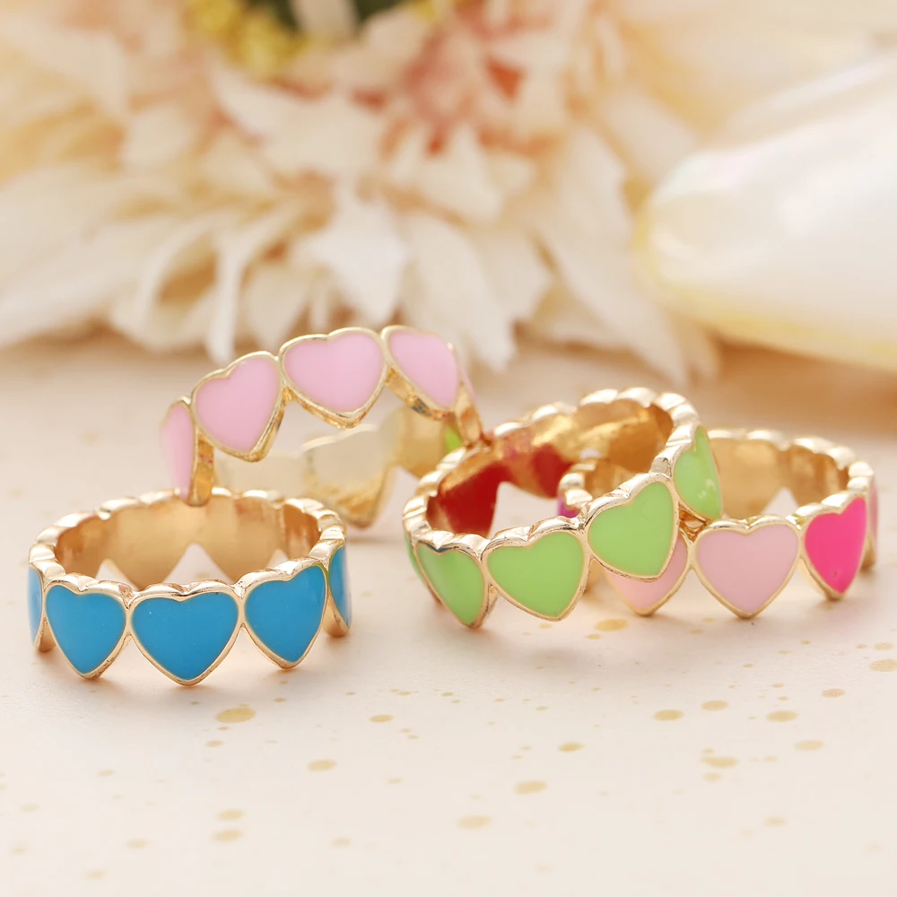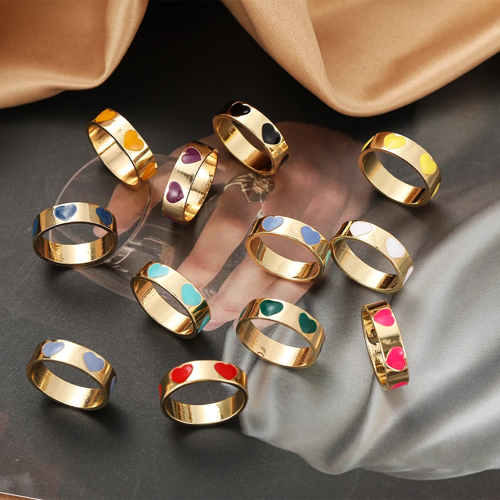 Новинка, модные креативные Простые Кольца разноцветное сердце любовь года, двухслойные винтажные парные кольца с сердцем для женщин, модные украшения