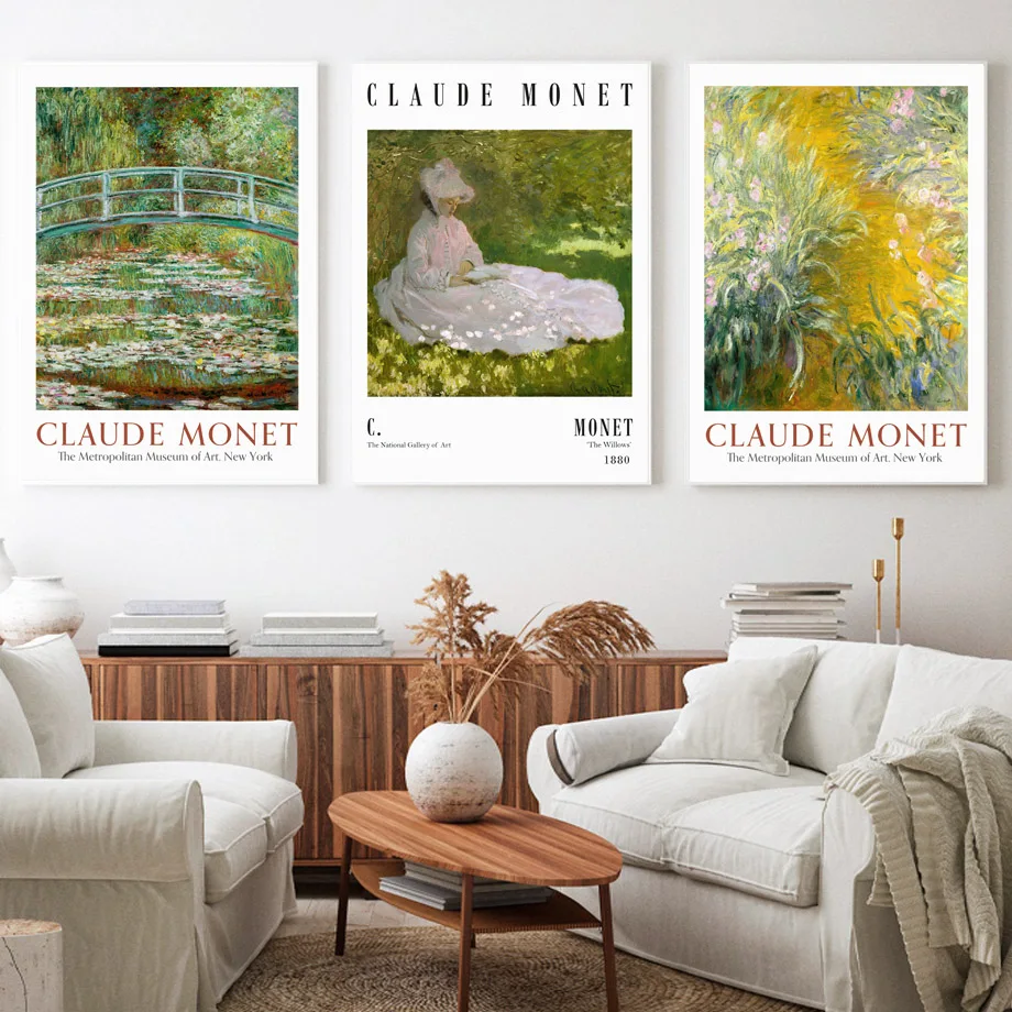 Картина на холсте Клод Моне, Настенная картина с изображением травы, водной лилии в скандинавском стиле, декор для гостиной