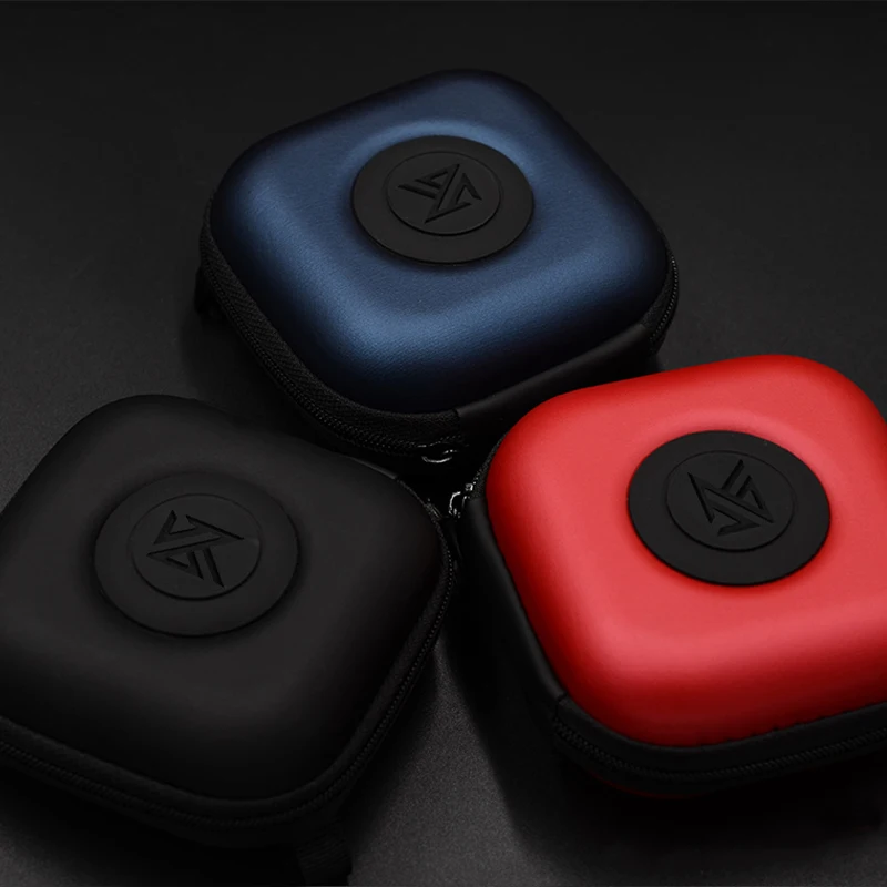 Чехол для кабеля, наушники KZ, из искусственной кожи, с логотипом синего цвета, защитный чехол для наушников 85 мм x 85 мм x 40 мм