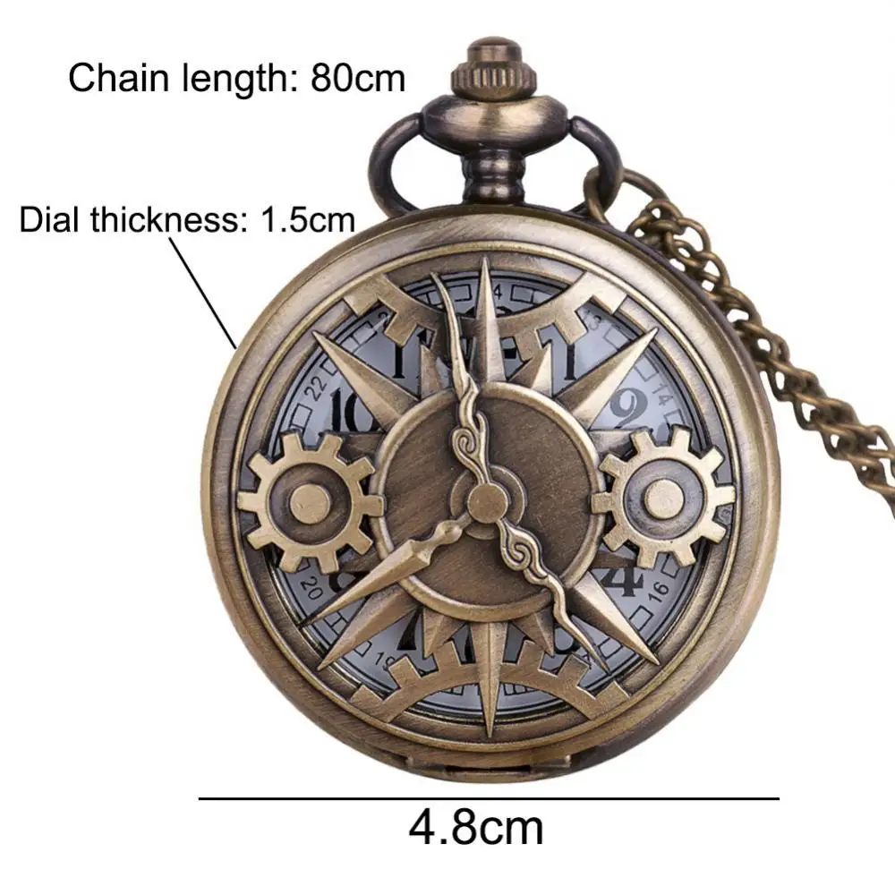 Винтажный Унисекс полый Шестерня номер кварцевые карманные часы кулон ожерелье