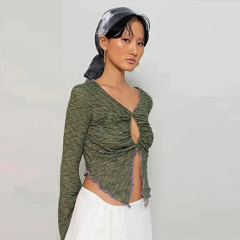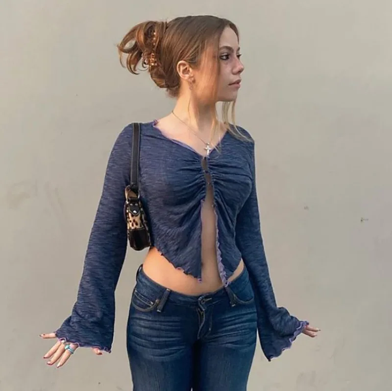Y2k Феи гранж Топы E-Girls короткий топ с длинными рукавами футболки винтажная одежда осень 2021 г. Сексуальный Кардиган Топы