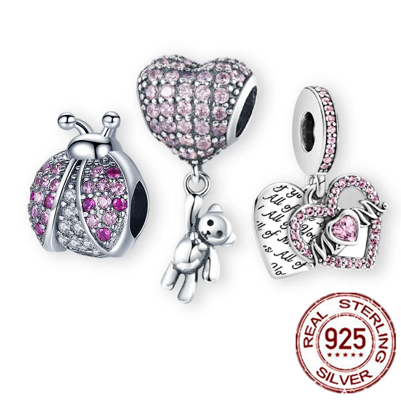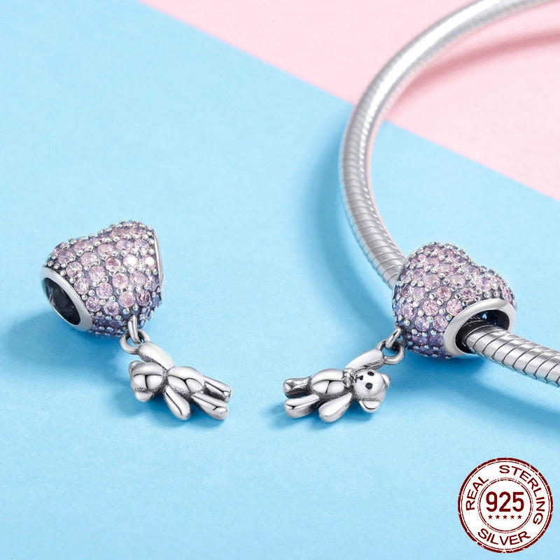 Подлинные серебряные бусины 925 пробы, с рисунком Мишки и сердца лю...