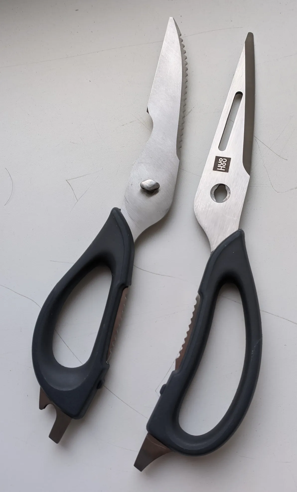 Великолепные кухонные ножницы! Аналогов за такую цену не видела. Легко разъединяются для заточки.