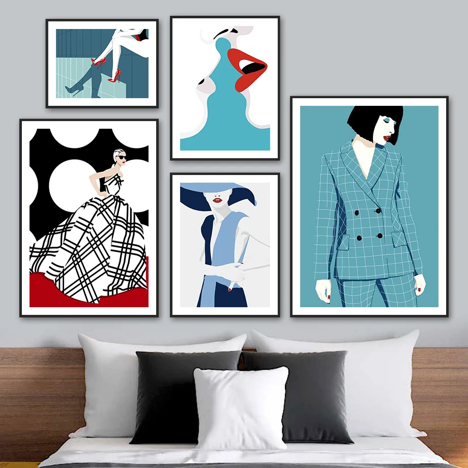 Модный поцелуй Девушка Подиум высокий каблук салонная настенная Картина на холсте скандинавские постеры и печать настенные картины для декора гостиной