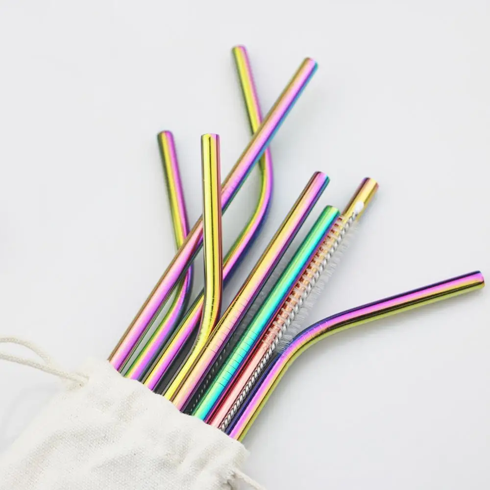 Многоразовые питьевые соломинки 1810, набор соломинок из нержавеющей стали, высококачественная металлическая цветная соломинка с чистящей щеткой, аксессуар для вечерние