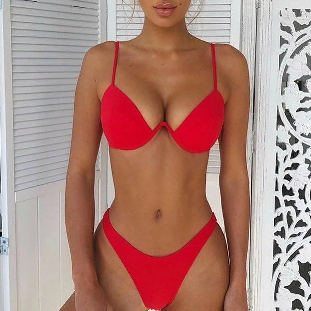 2021 Прямая поставка, пикантный бразильский комплект бикини с пуш-ап без подкладки, Женский бандажный комплект бикини 4 цветов, купальник, купальник