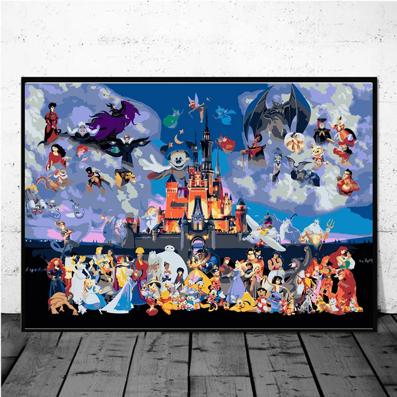 Картины на холсте с героями Диснея, картины с героями мультфильма Волшебное королевство, плакаты с рисунком аниме, настенные картины для гостиной, Декор для дома
