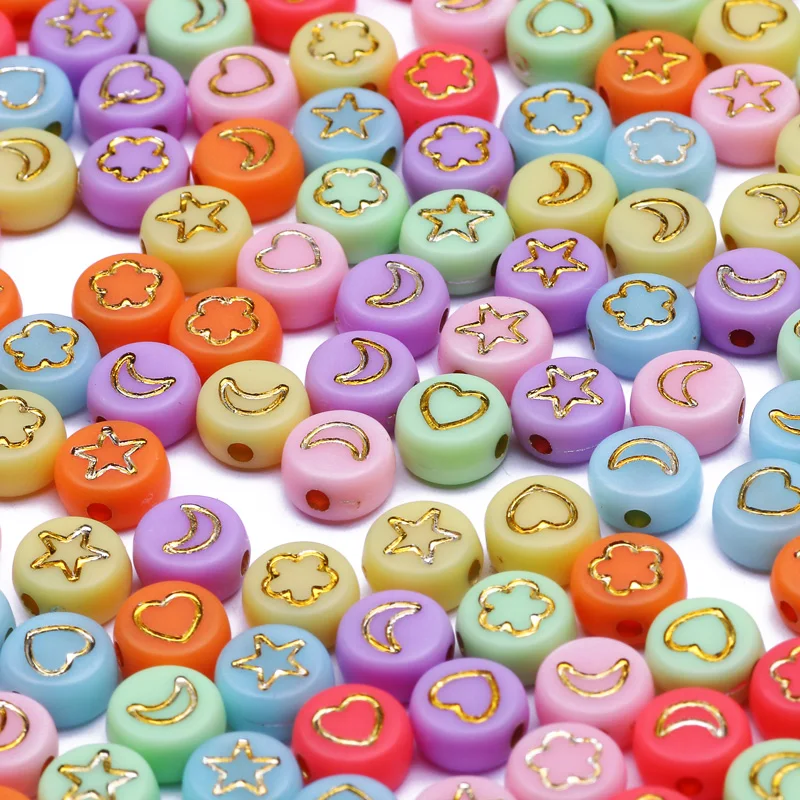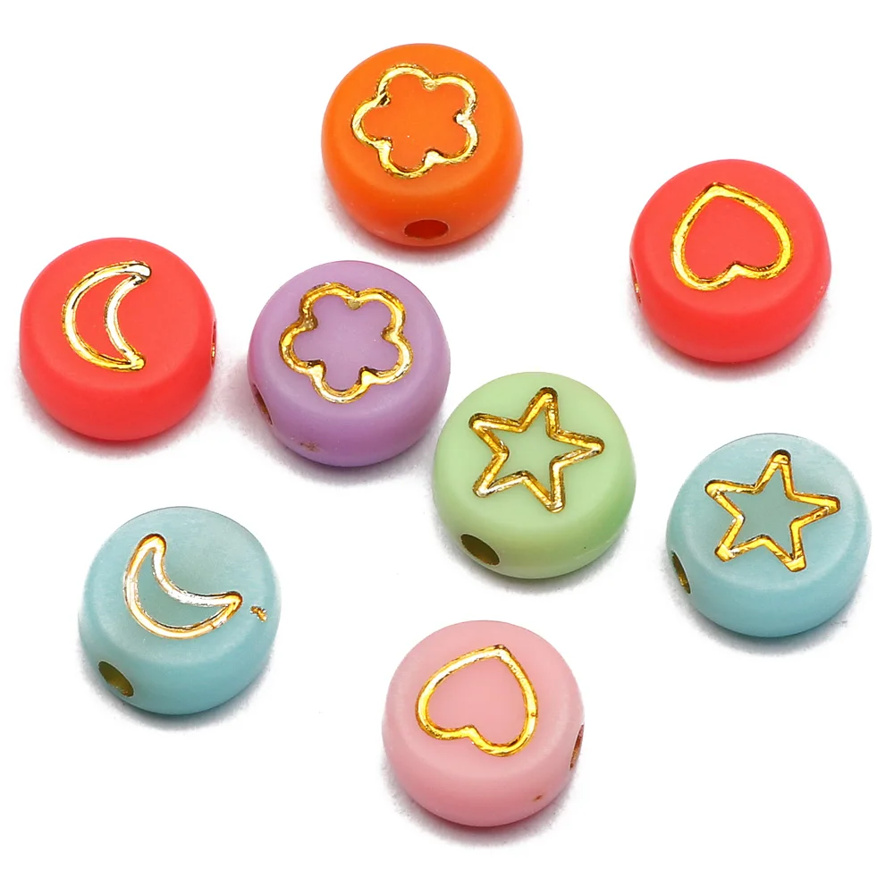 Смешанные акриловые бусины в форме звездыЛуныцветкасердца, свободные бусины-разделители для изготовления ювелирных изделий, аксессуары для ожерелья, браслета ручной работы