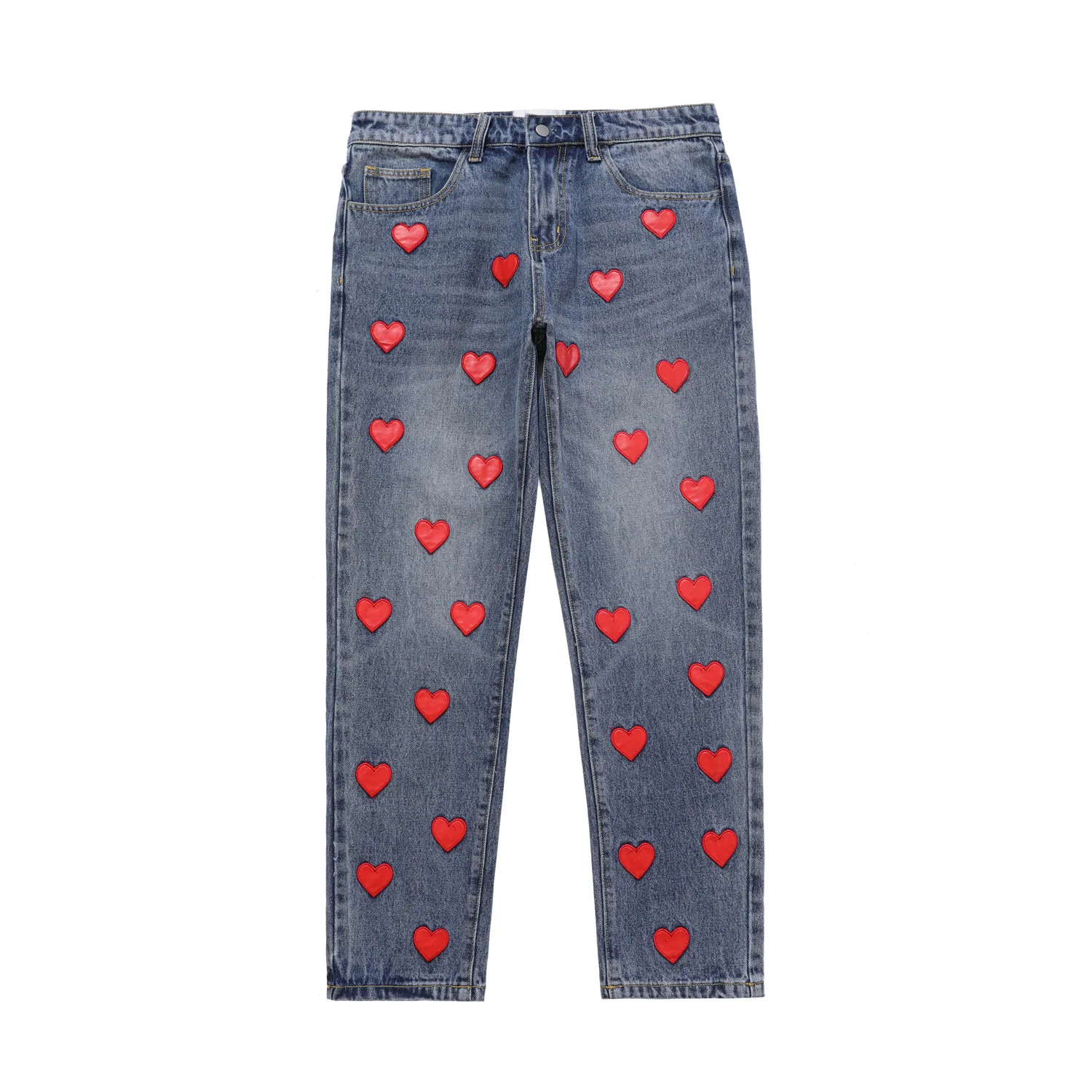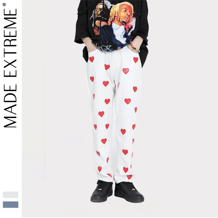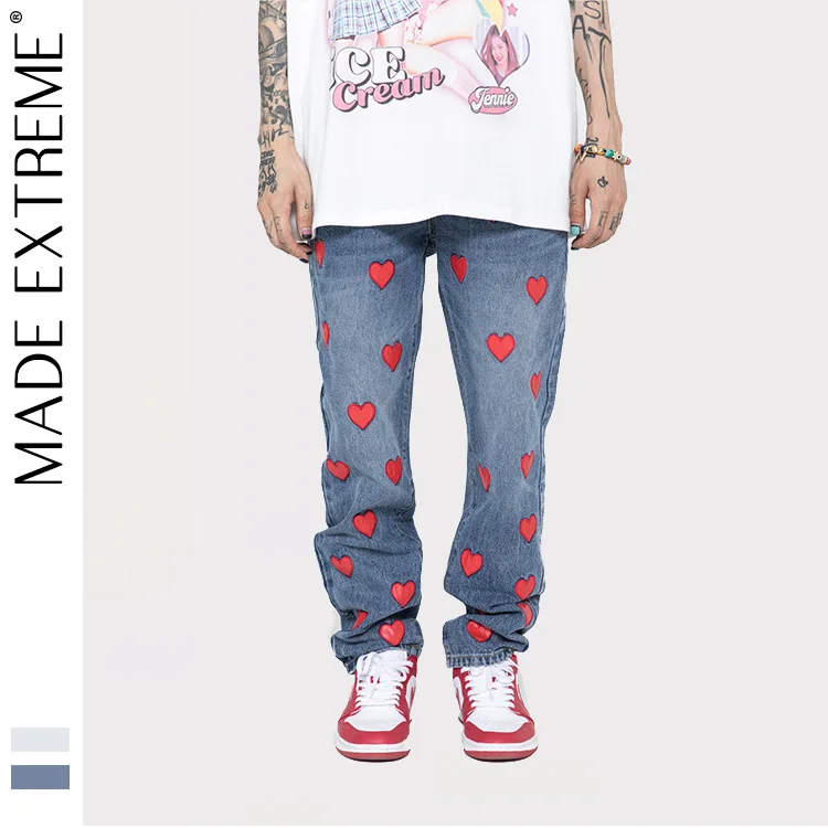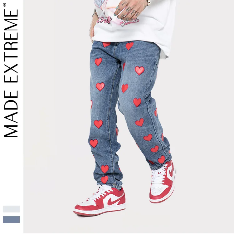 Мужские и женские джинсы с вышивкой в виде сердца MadeExtreme, джинсы в стиле хип-хоп, корейская модная одежда, мешковатые джинсы, уличная одежда, брюки-карго для мужчин, Z82