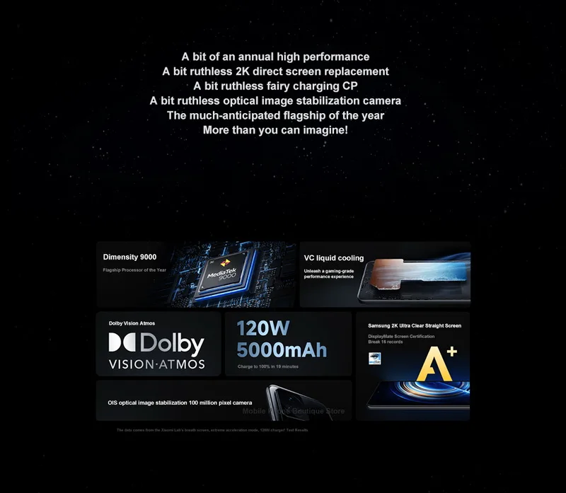 > Батарея ---- 5000 мАч (typ) батарея, быстрая зарядка 120 Вт