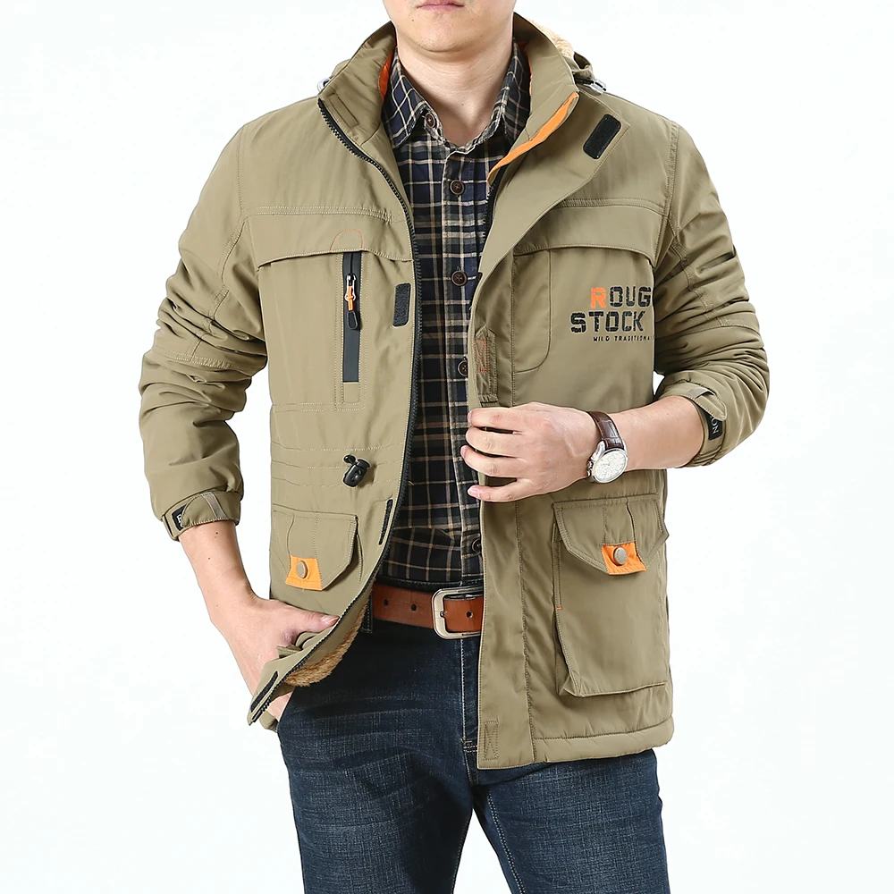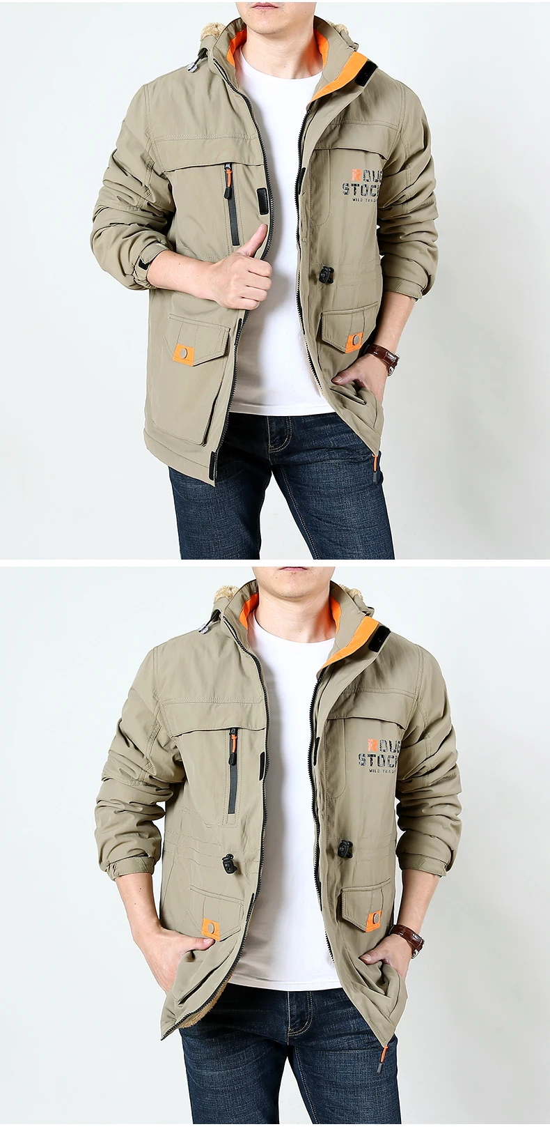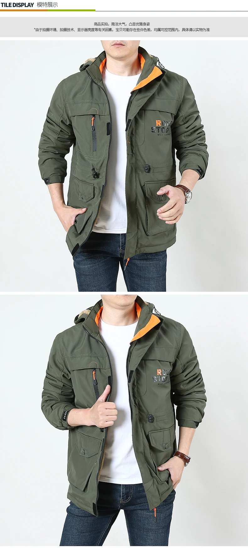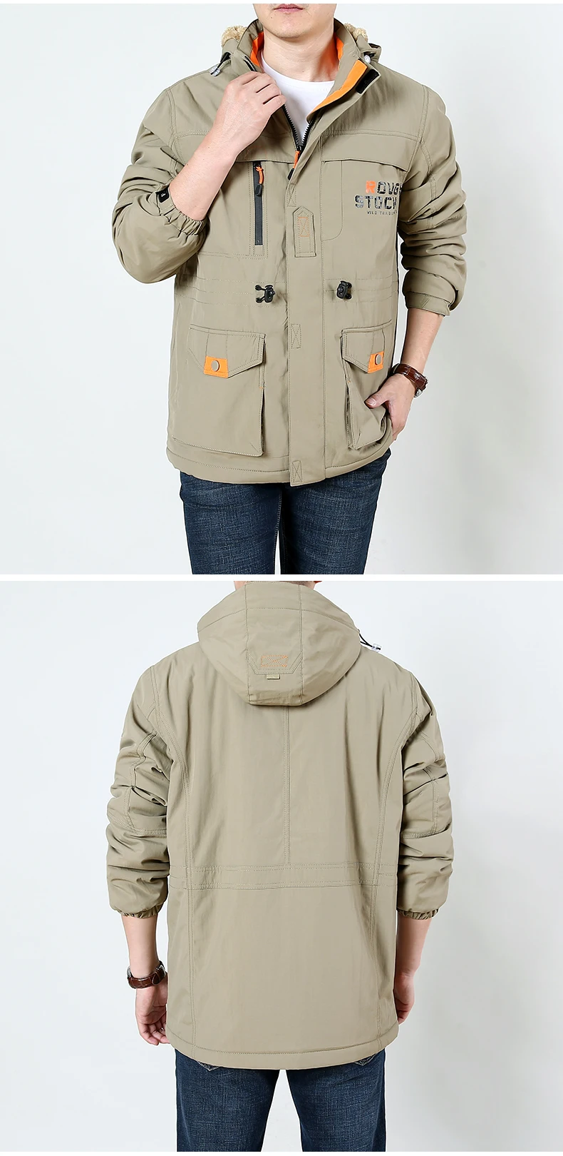 Мужская хлопковая куртка, брендовая винтажная плотная куртка для улицы, модная Водонепроницаемая шапка с карманами в стиле пэчворк, на осень-зиму