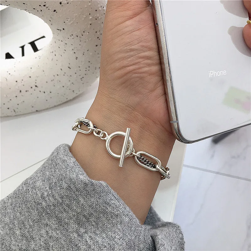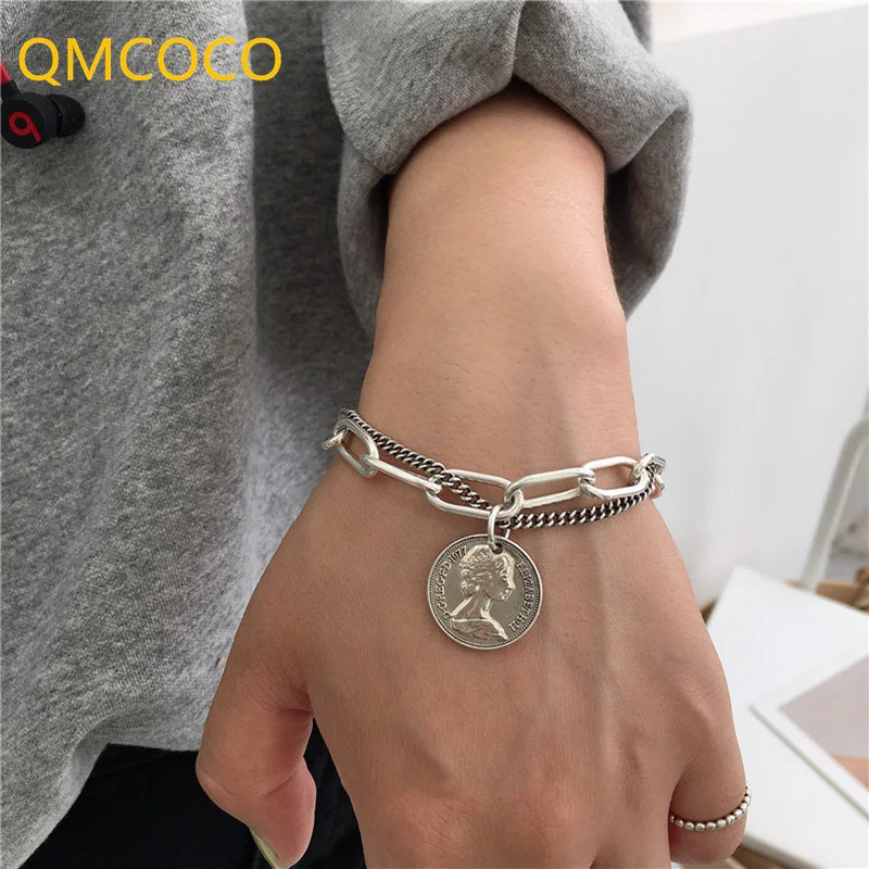 QMCOCO 925 Серебряный INS панк хип-хоп двойной браслет мужчины и женщины цепь Ретро портрет простой застежка OT браслет 2021 новый тренд
