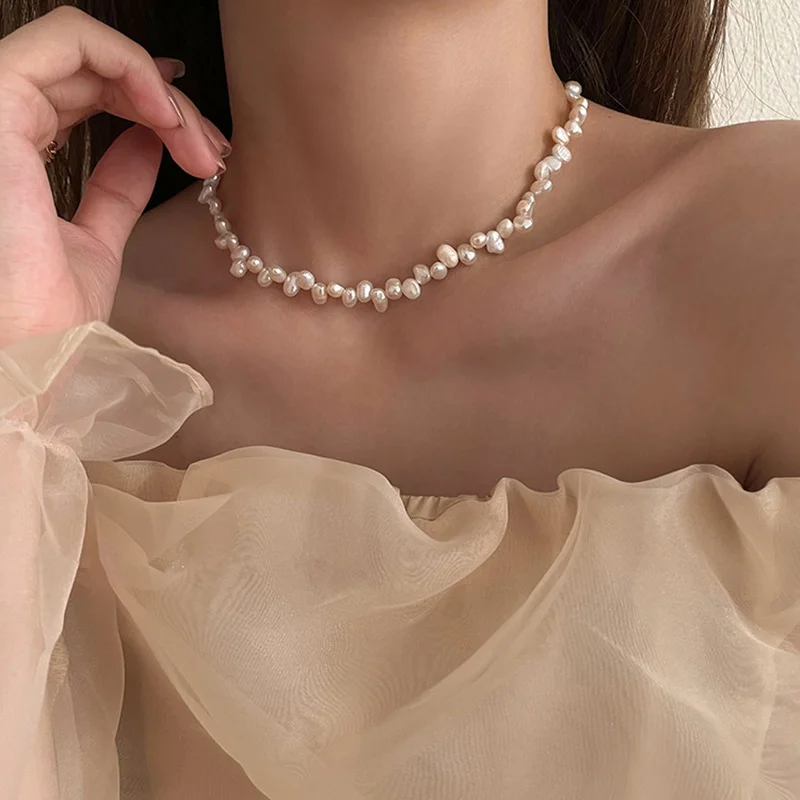 Ожерелье ALLNEWME женское с натуральным пресноводным жемчугом, элегантное французское колье-чокер неправильной формы в стиле барокко, свадебная бижутерия