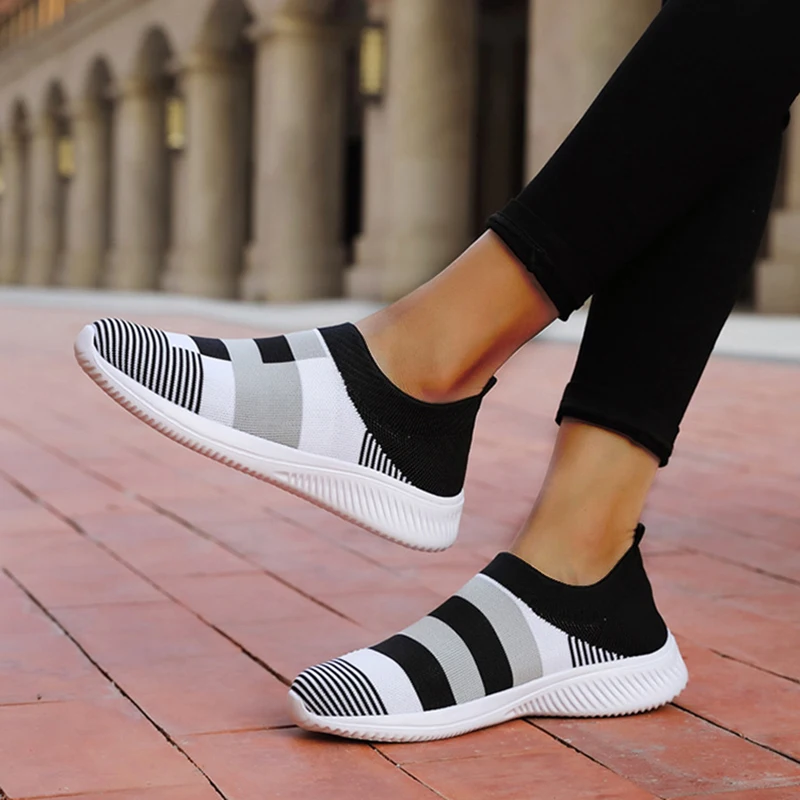 Кроссовки-носки для женщин, Вулканизированная подошва, без застежки...