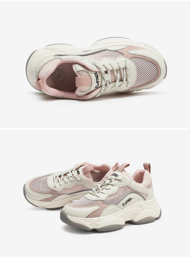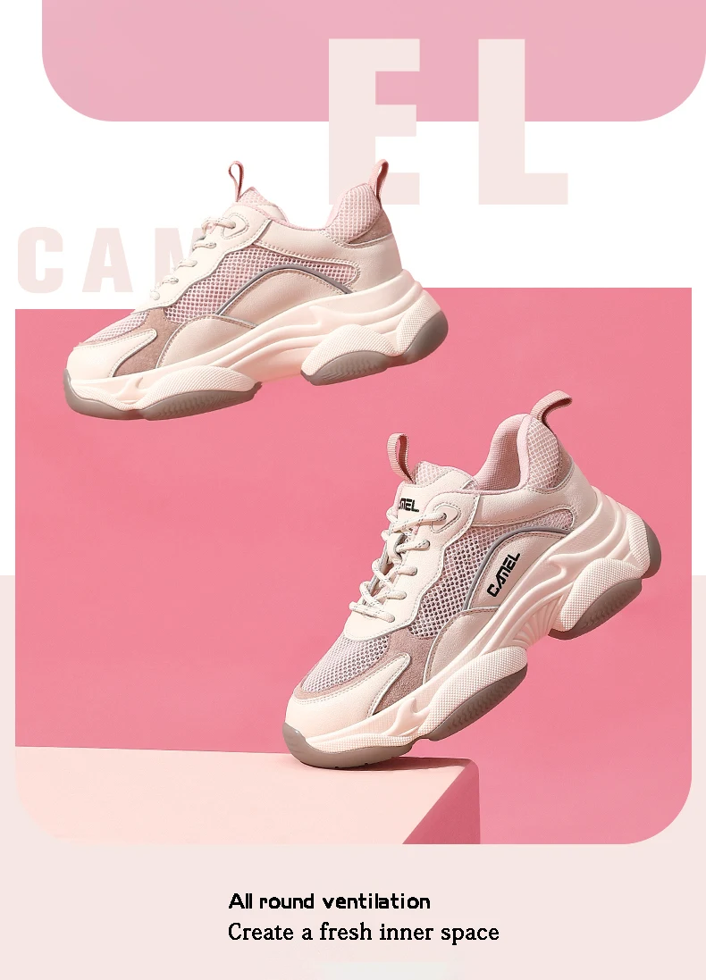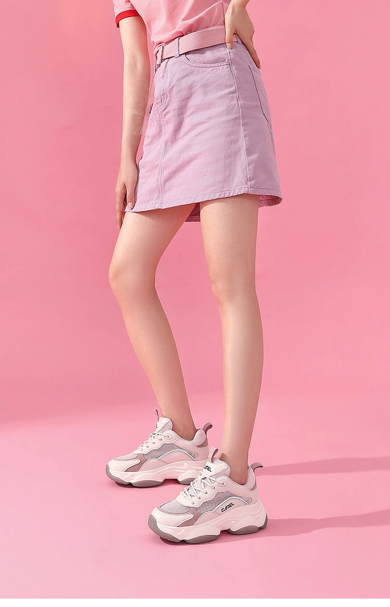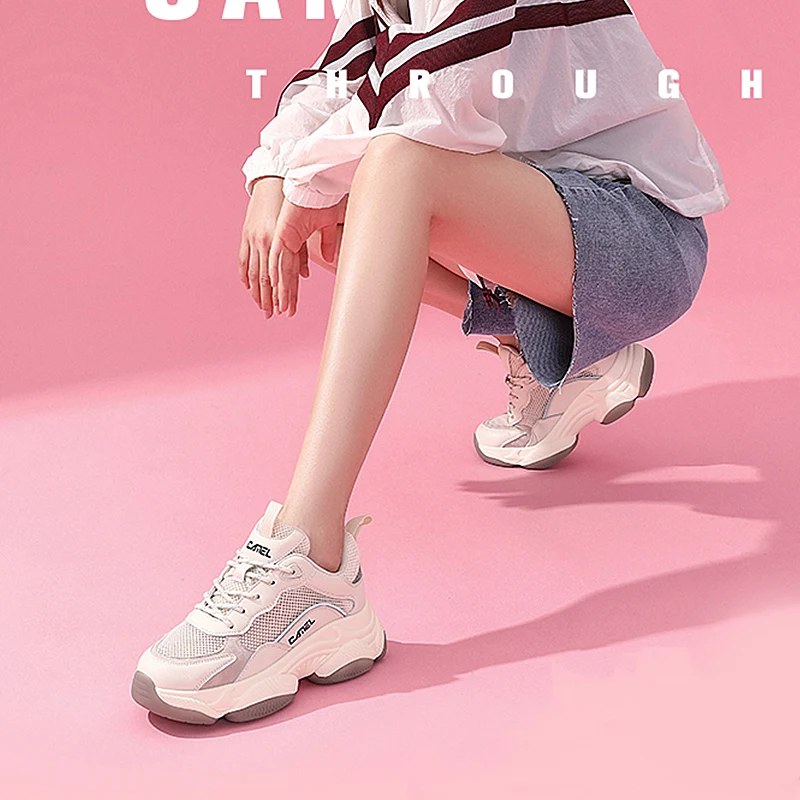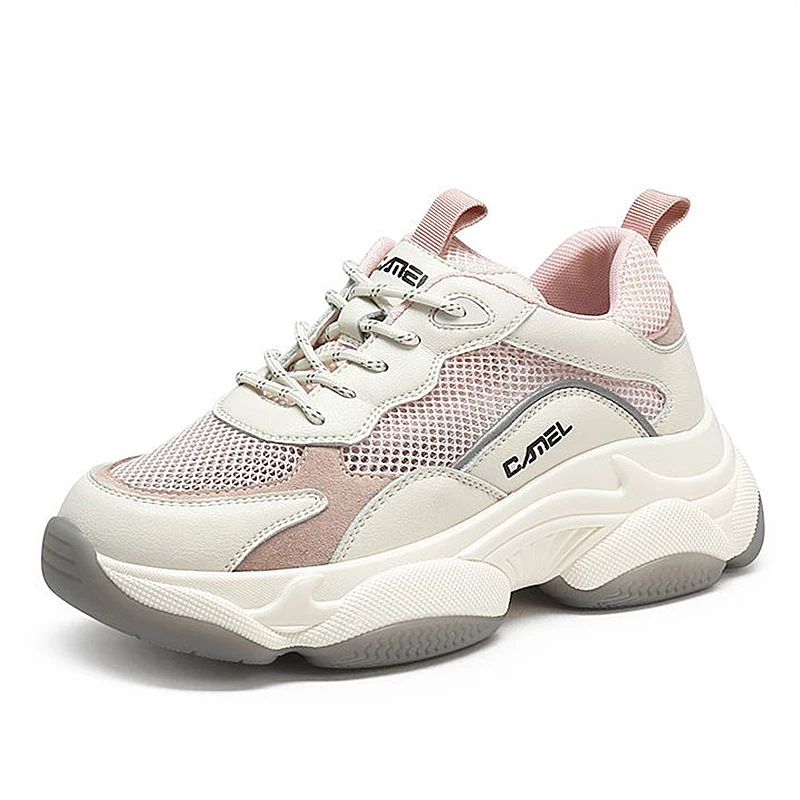 Женские массивные кроссовки CAMEL, сетчатые дышащие повседневные туфли на плоской платформе, на толстой подошве, розовые, лето 2021