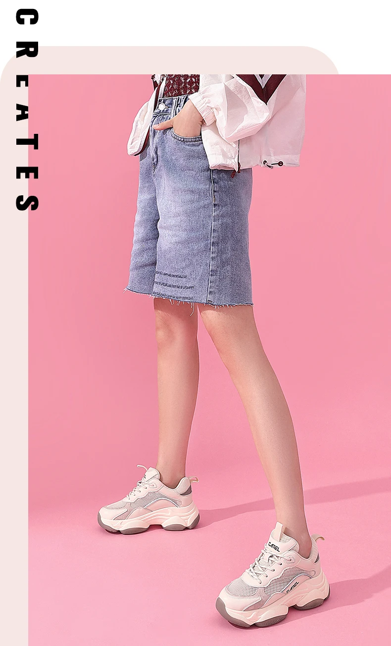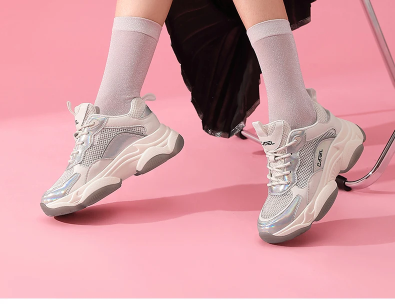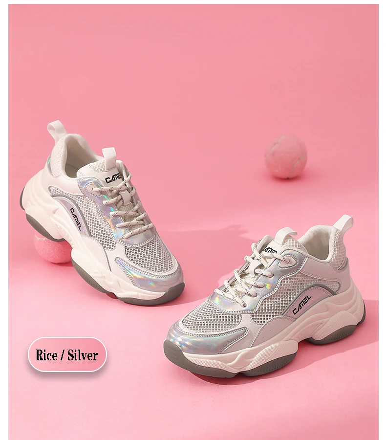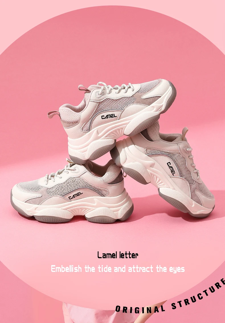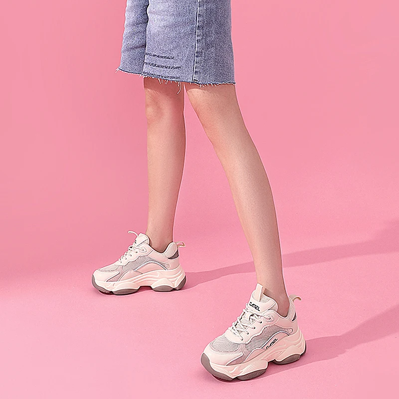 Женские массивные кроссовки CAMEL, сетчатые дышащие повседневные туфли на плоской платформе, на толстой подошве, розовые, лето 2021