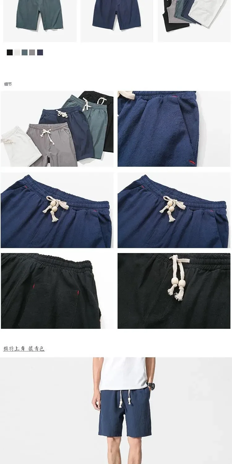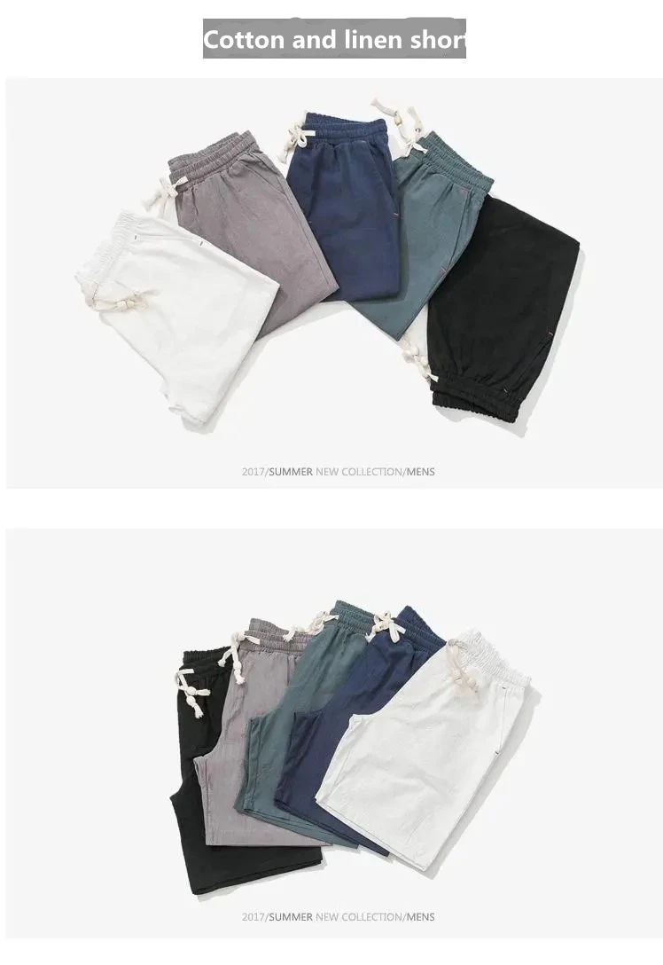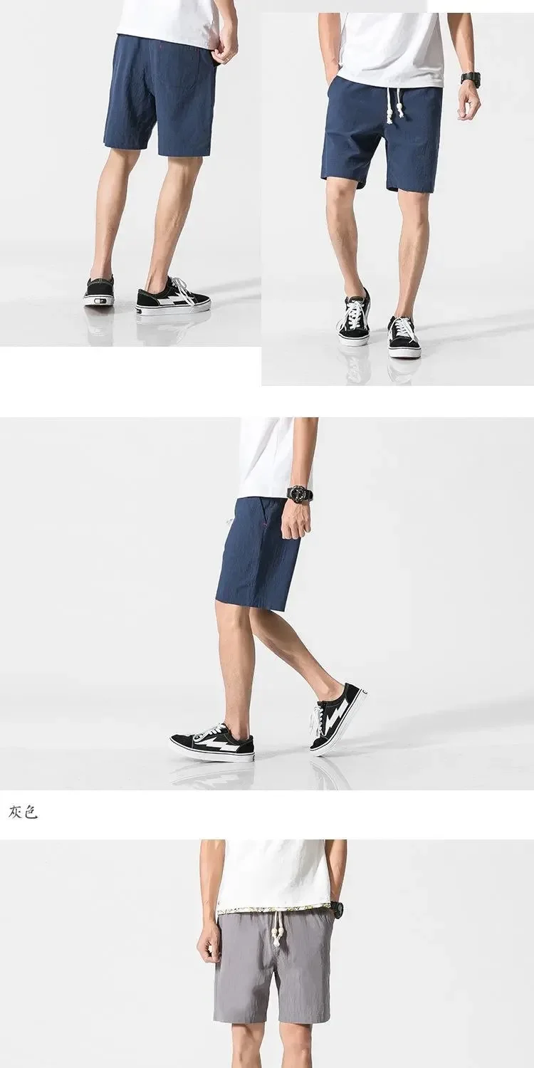 Шорты мужские, из хлопка и льна, однотонные, удобные, мягкие, дышащ...