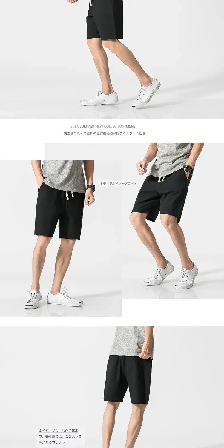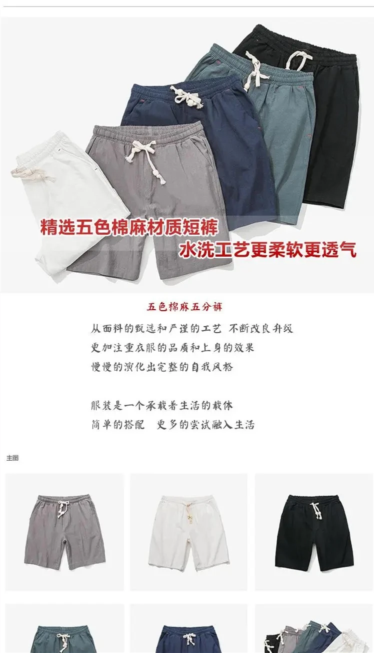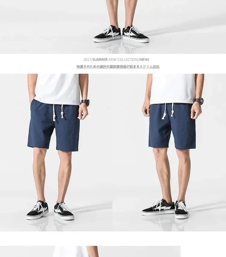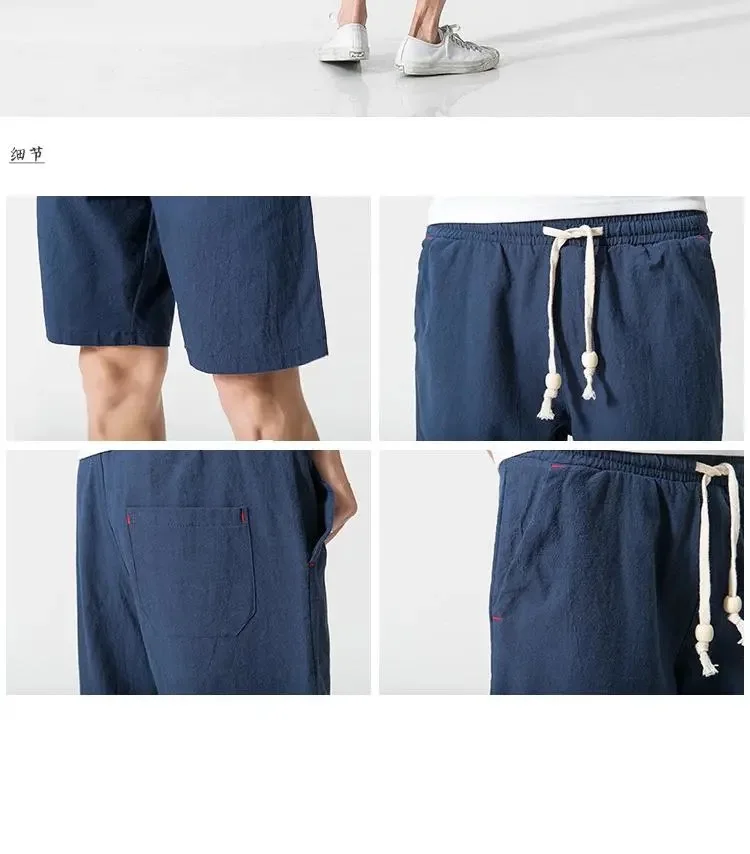 Шорты мужские, из хлопка и льна, однотонные, удобные, мягкие, дышащ...