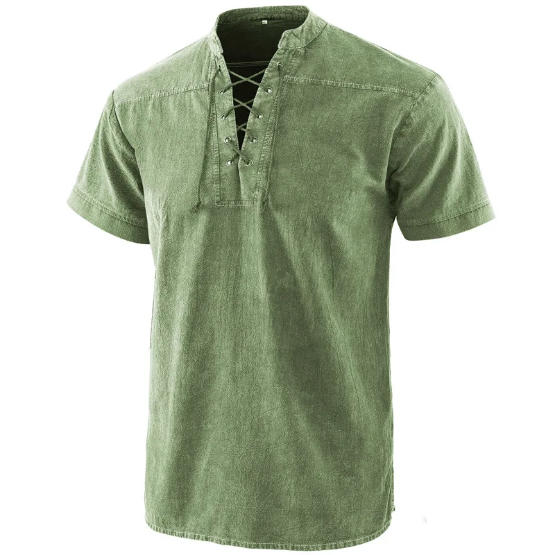 Готическая футболка со шнуровкой и V-образным вырезом в стиле ретро, Мужская хлопковая футболка с длинным рукавом, свободные топы, винтажный костюм пирата викингов, 2021