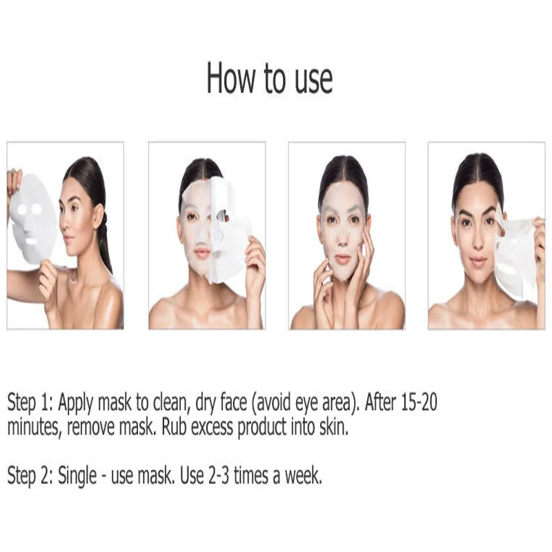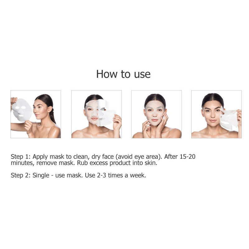 Шаг 1: Нанесите маску на чистое, сухое лицо (Избегайте области вокруг глаз). Через 15-20 минут удалите маску. Втирайте лишний продукт в кожу.Шаг 2: одноразовая маска. Используйте 2-3 раза в неделю.